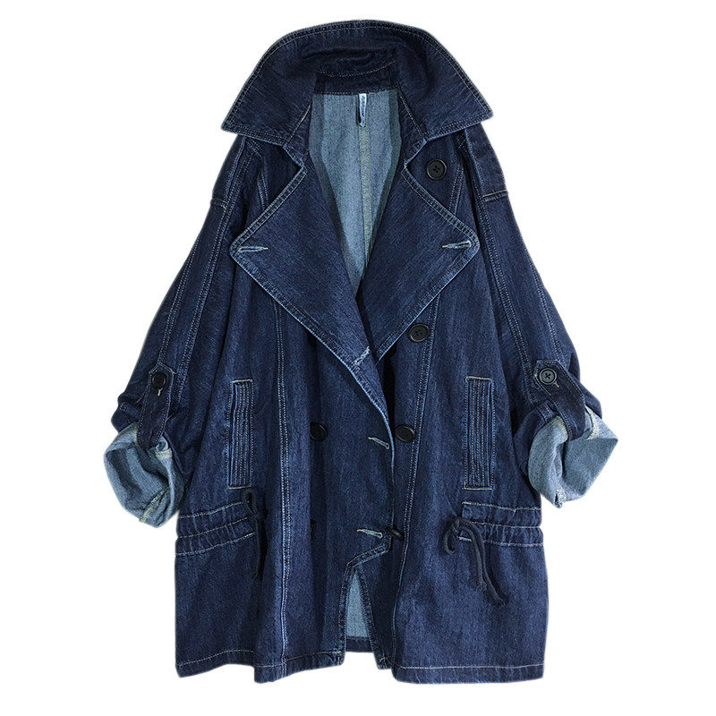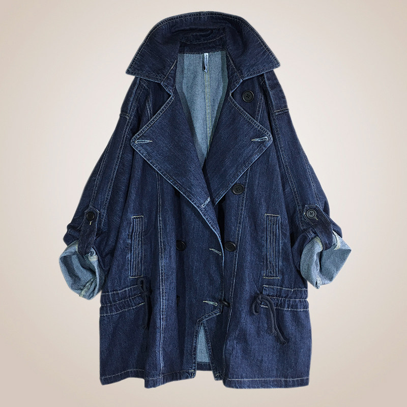 Модный джинсовый пиджак классического кроя, осенний плащ, изысканный стиль, яркий броский стиль, большой размер