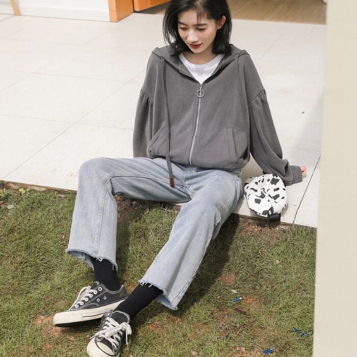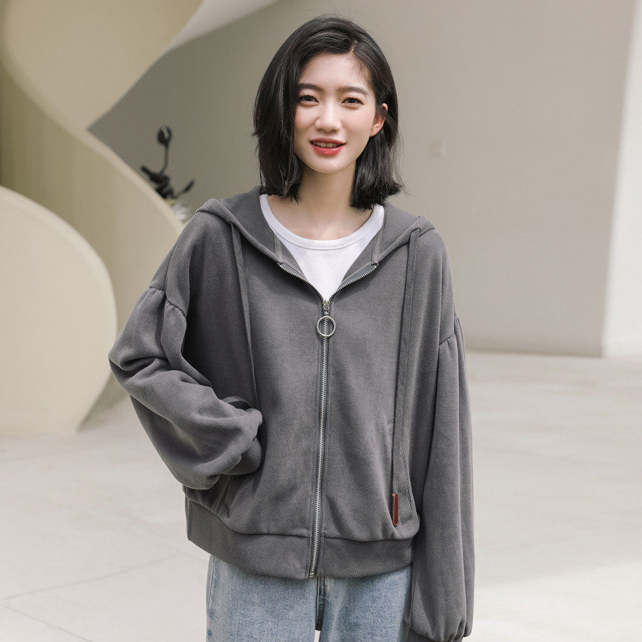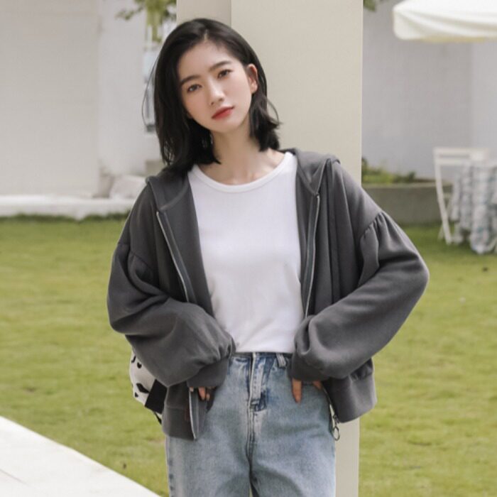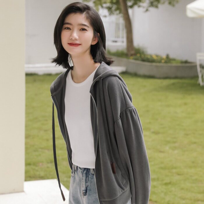 Короткая толстовка с капюшоном для школьников и студентов, модный кардиган, рукава фонарики, подходит для подростков, в корейском стиле