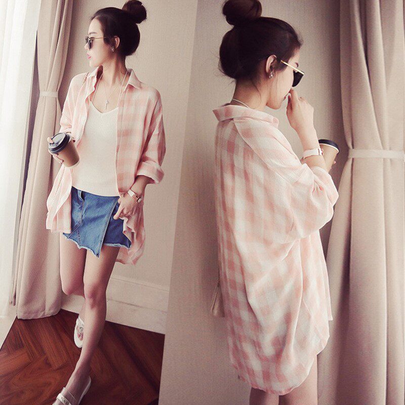 Легкая и тонкая пляжная длинная рубашка, кардиган, 2020, в корейском стиле, большой размер, средней длины