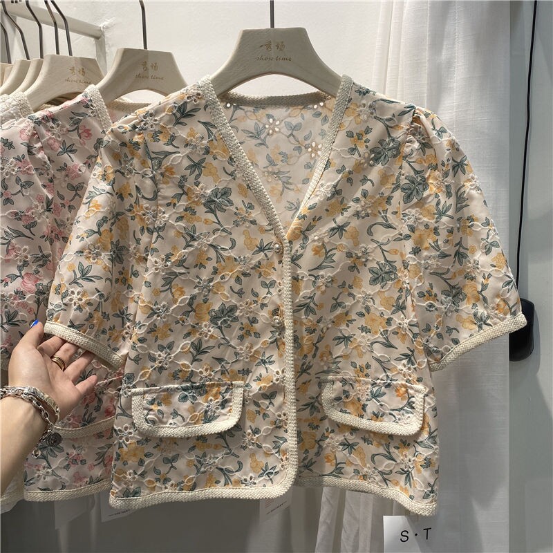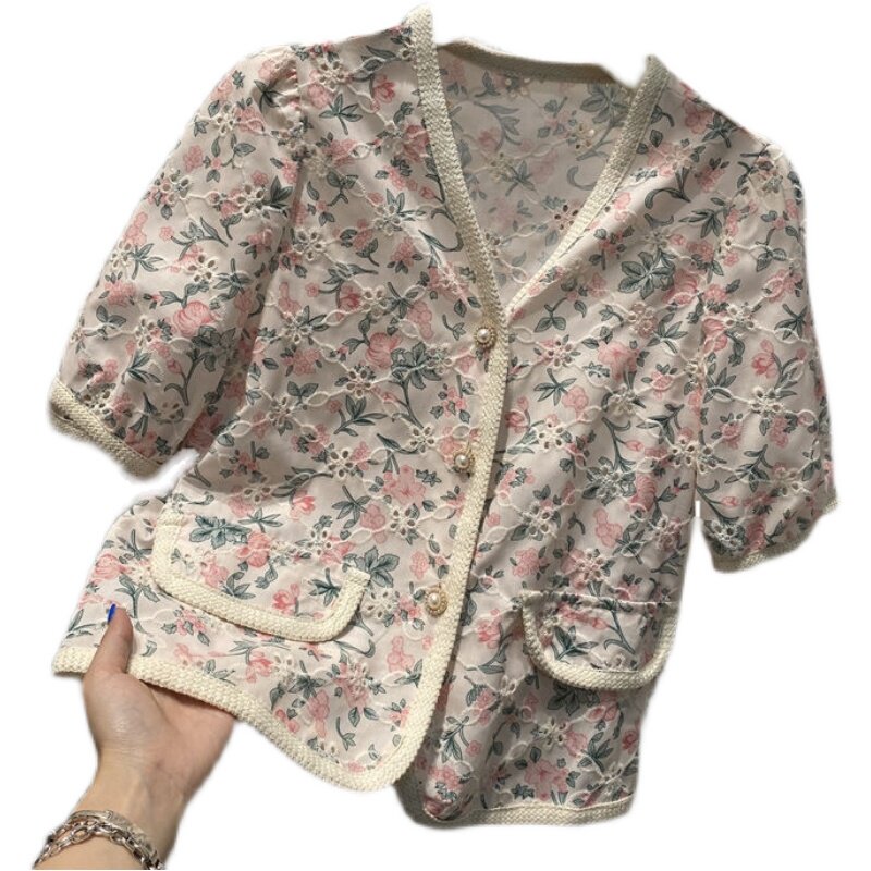 Брендовая элитная рубашка, короткий кардиган, цветочный принт