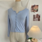 Кардиган с круглым воротником, куртка, базовый приятный телу лонгслив, короткая футболка, защита от солнца