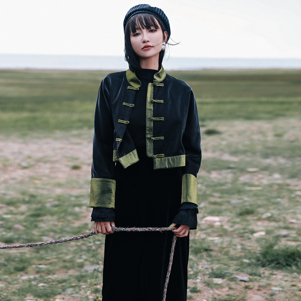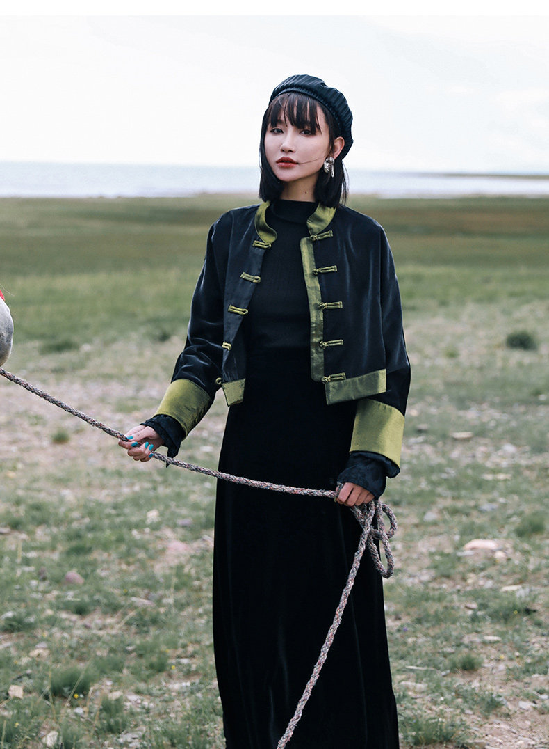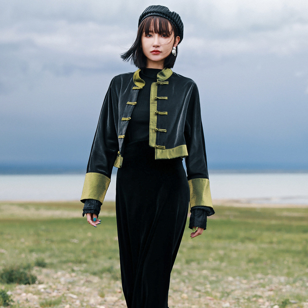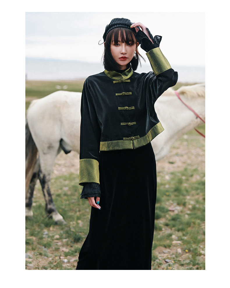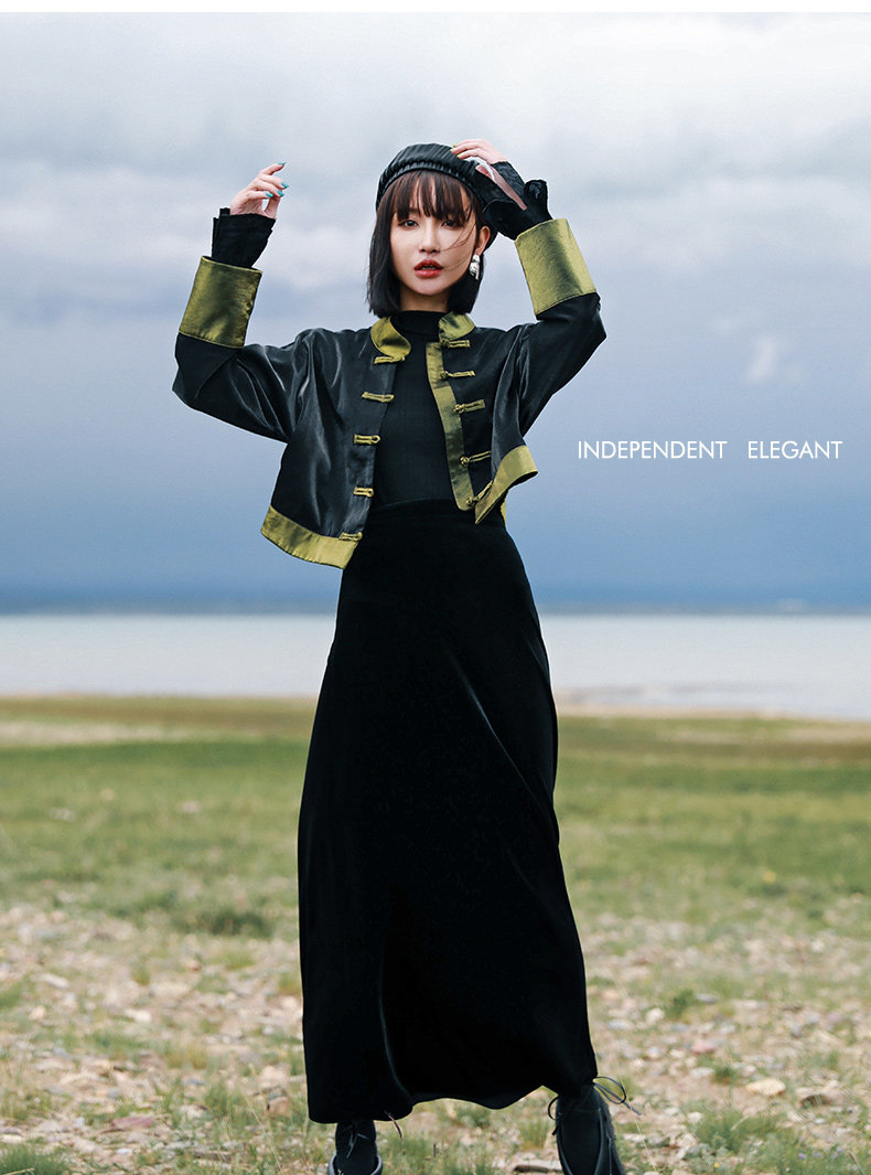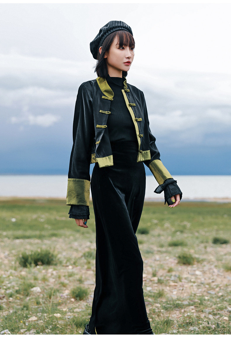 Ретро куртка, приталенный лонгслив, китайский стиль, подходит для подростков, высокая талия