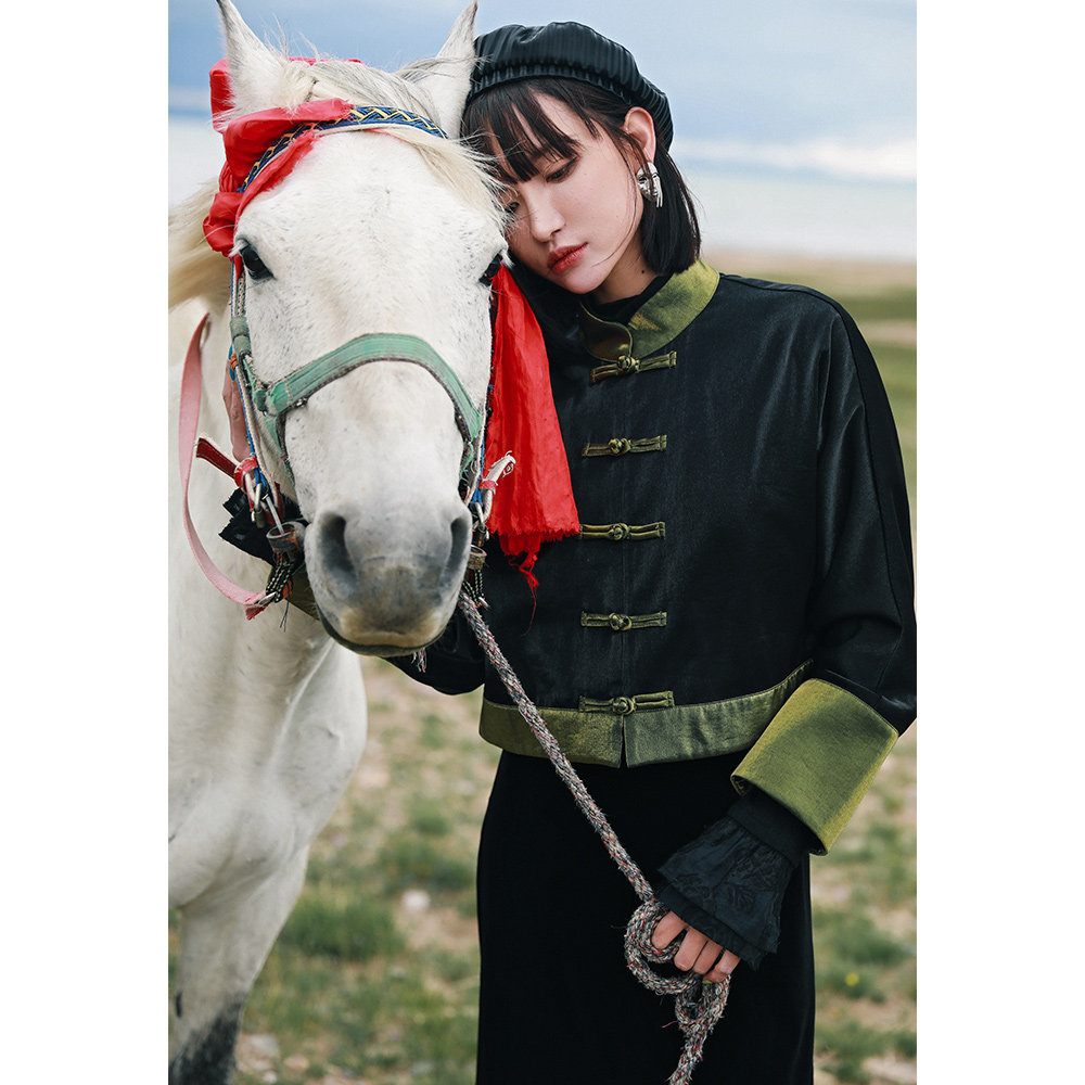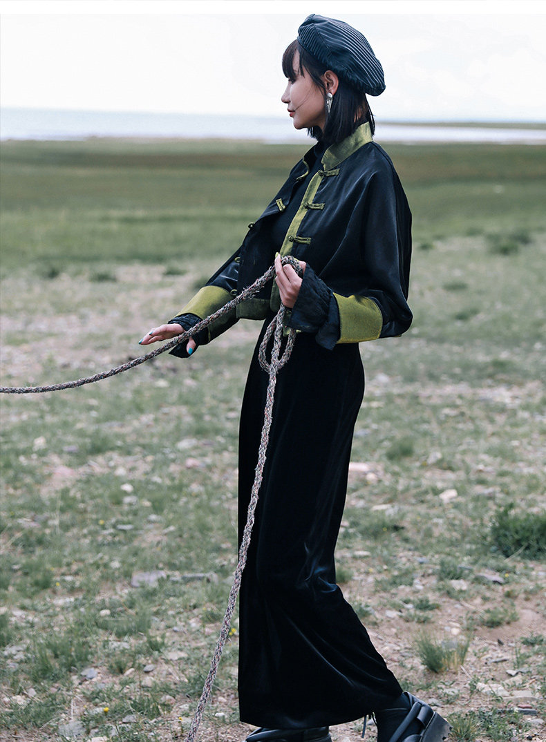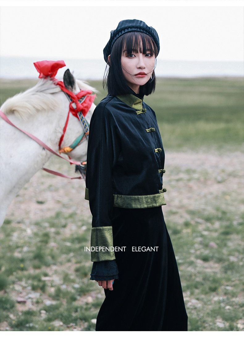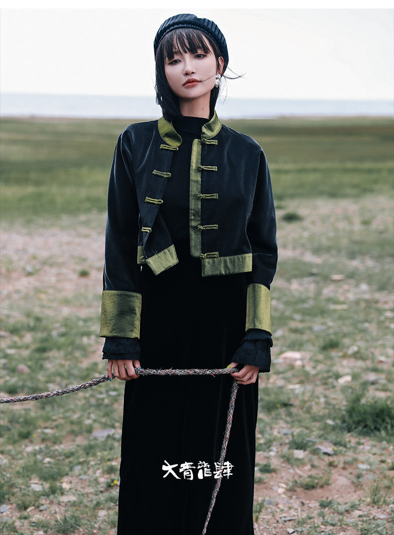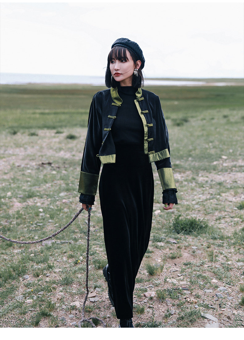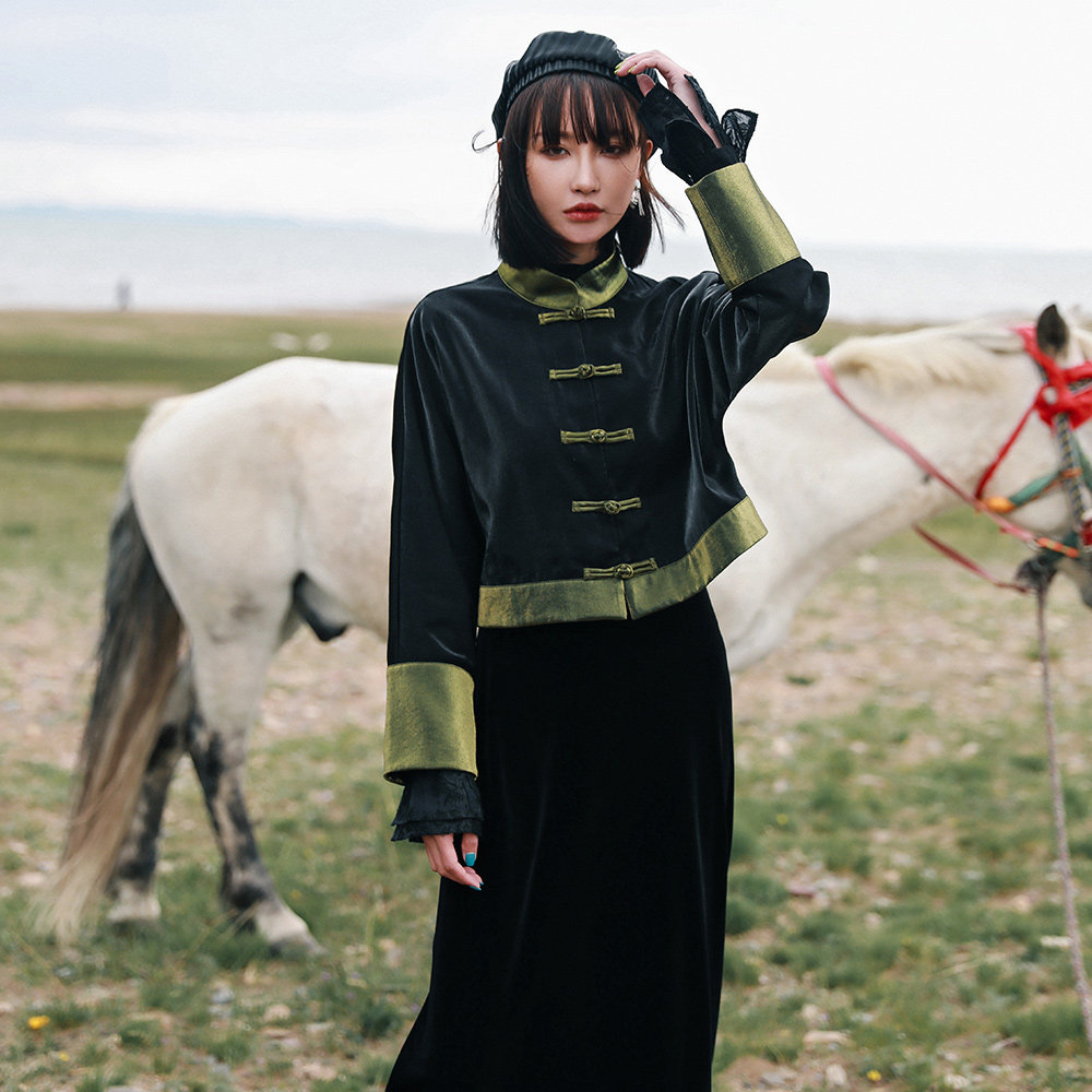 Ретро куртка, приталенный лонгслив, китайский стиль, подходит для подростков, высокая талия
