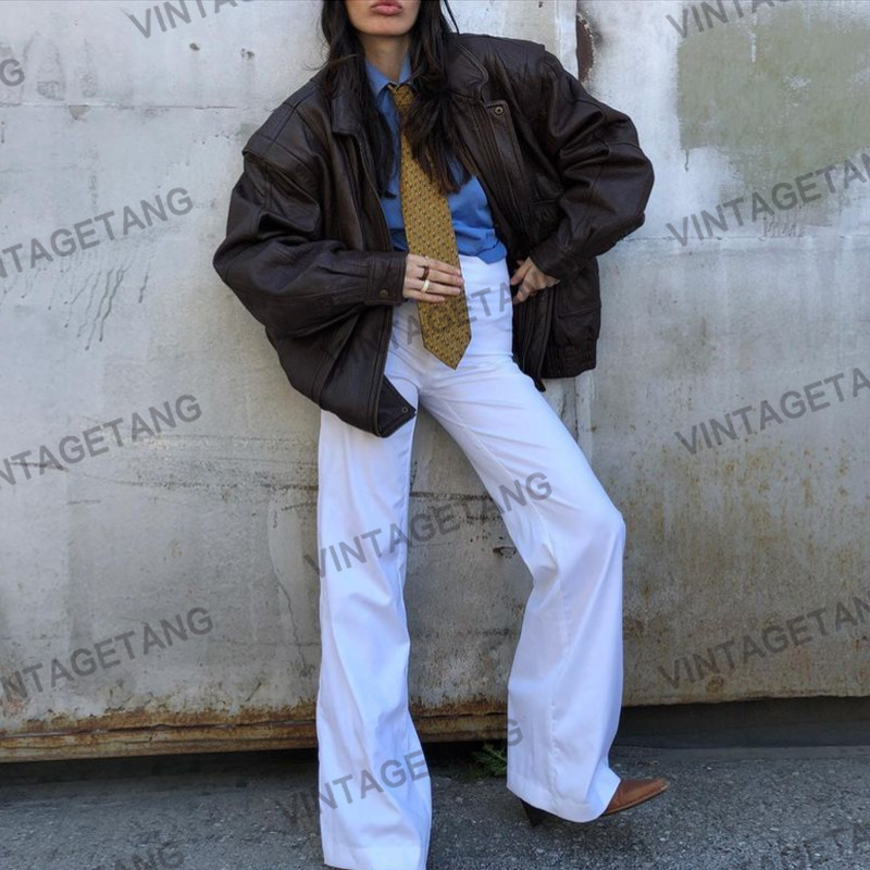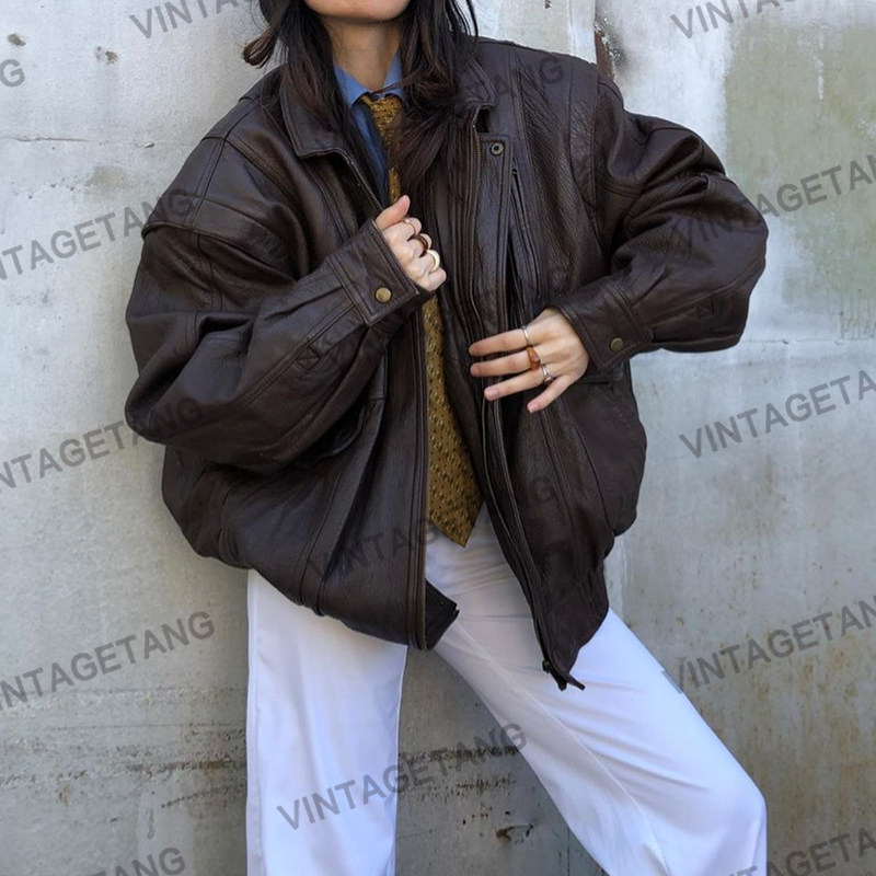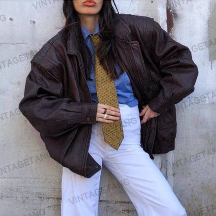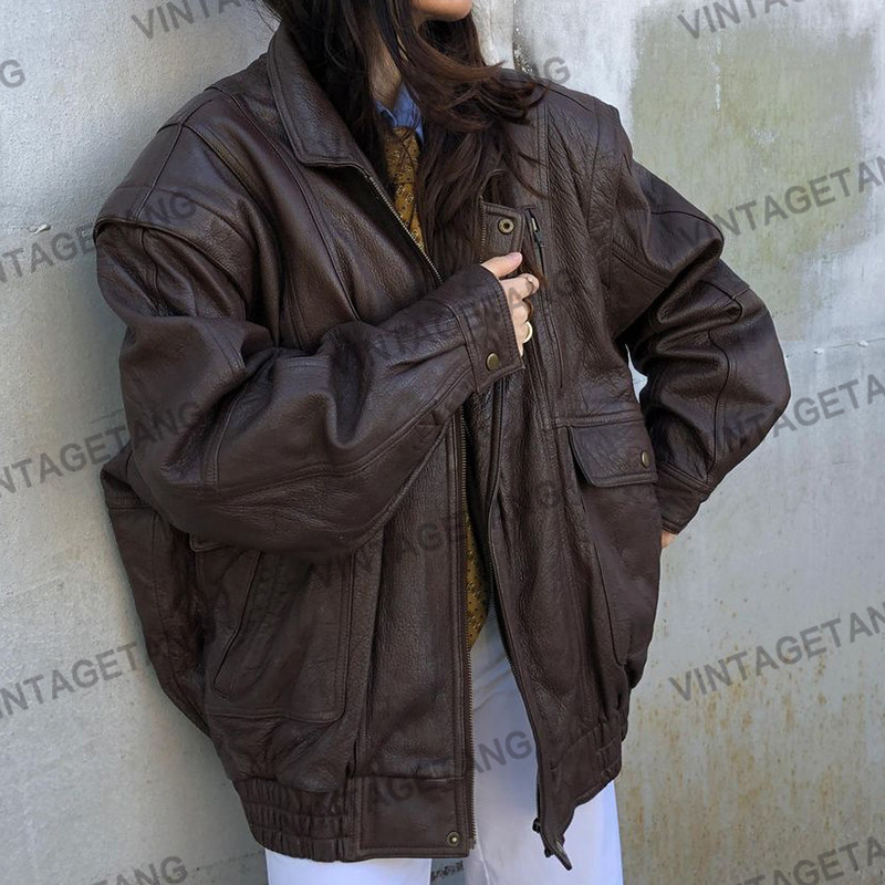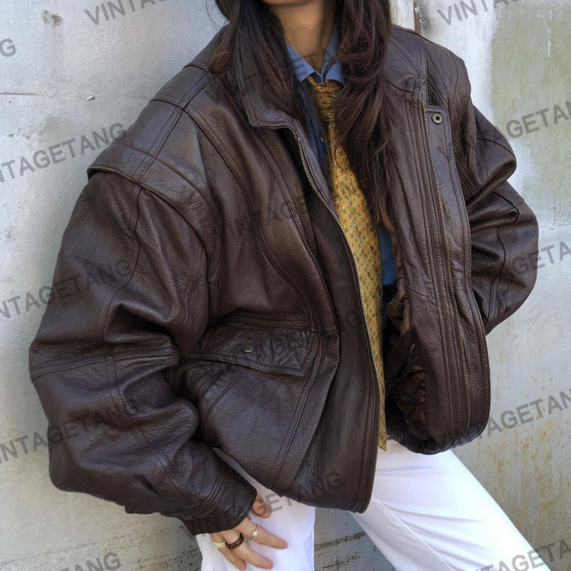 Ретро коричневая куртка, в американском стиле, свободный крой