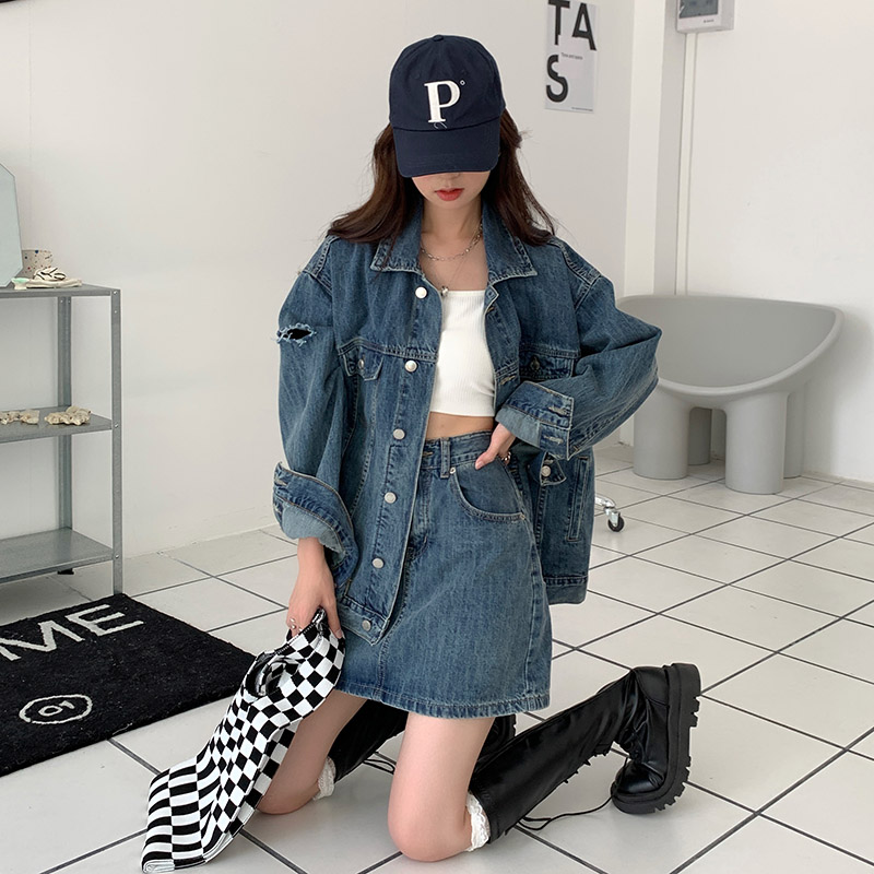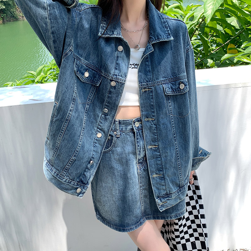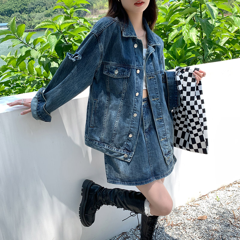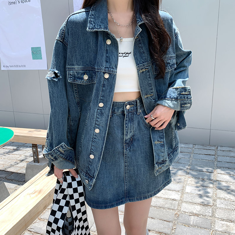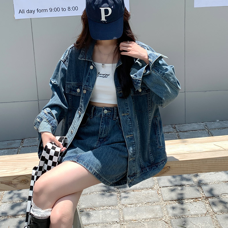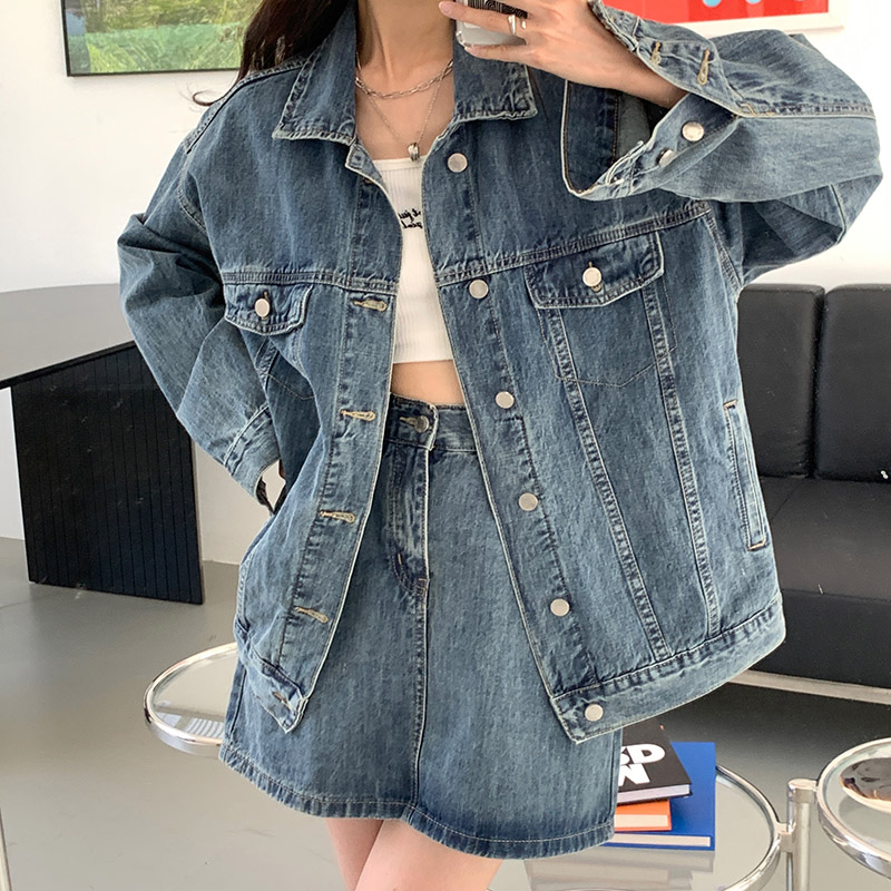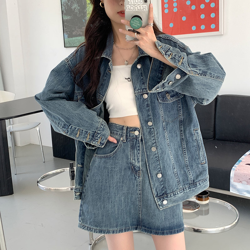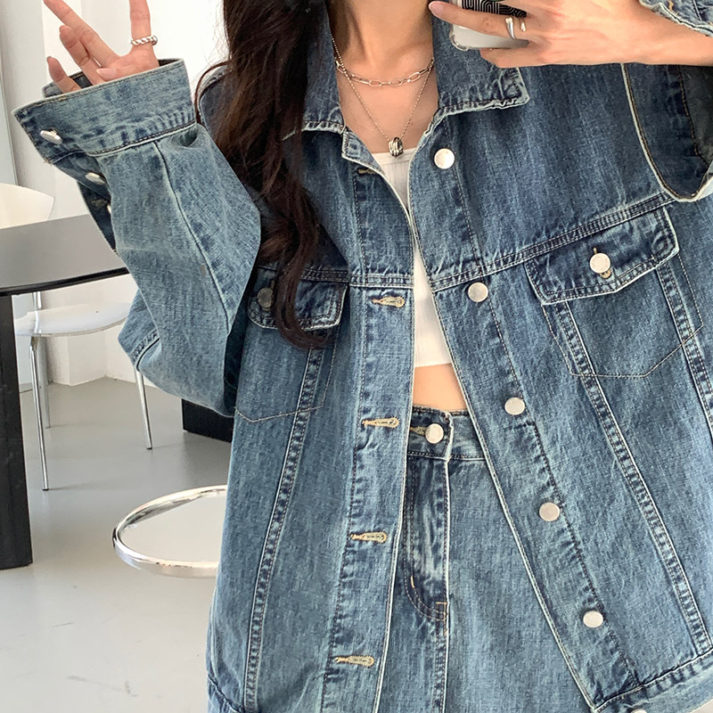 Весенняя осенняя джинсовая куртка, ретро комплект, большой размер, оверсайз, в корейском стиле, подходит для подростков