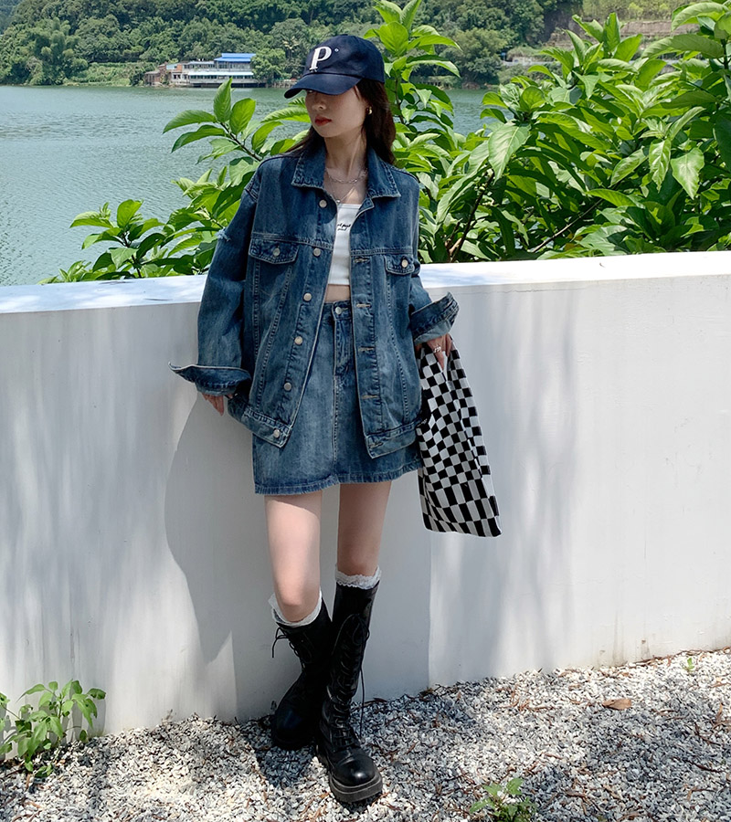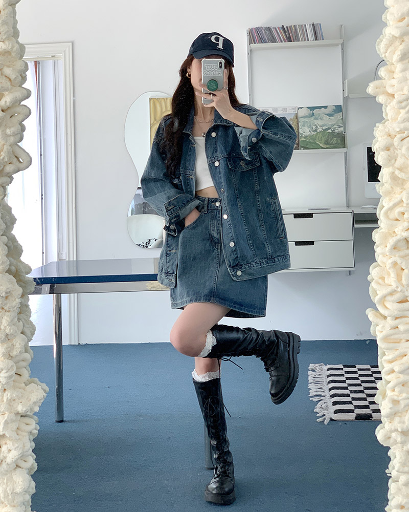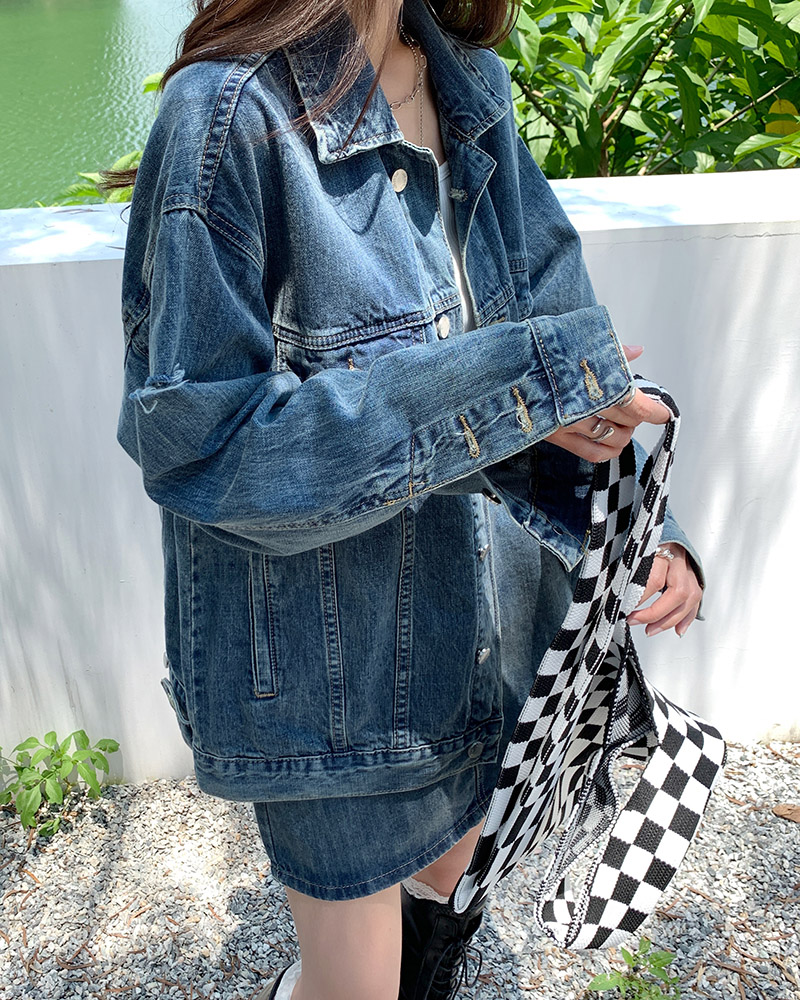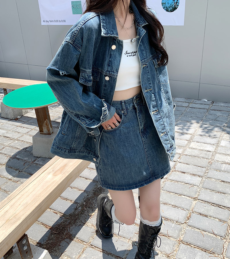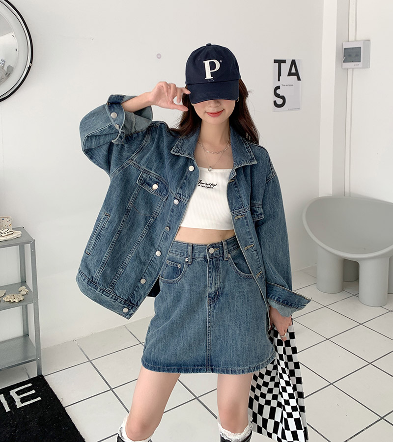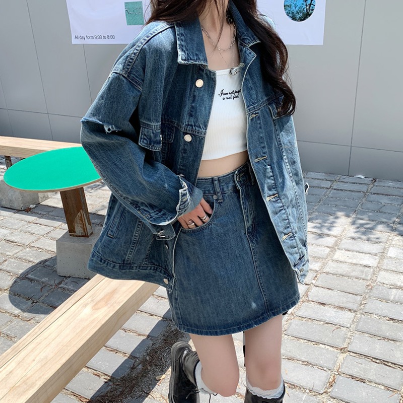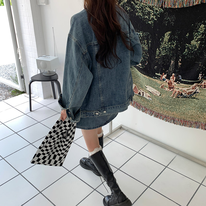 Весенняя осенняя джинсовая куртка, ретро комплект, большой размер, оверсайз, в корейском стиле, подходит для подростков