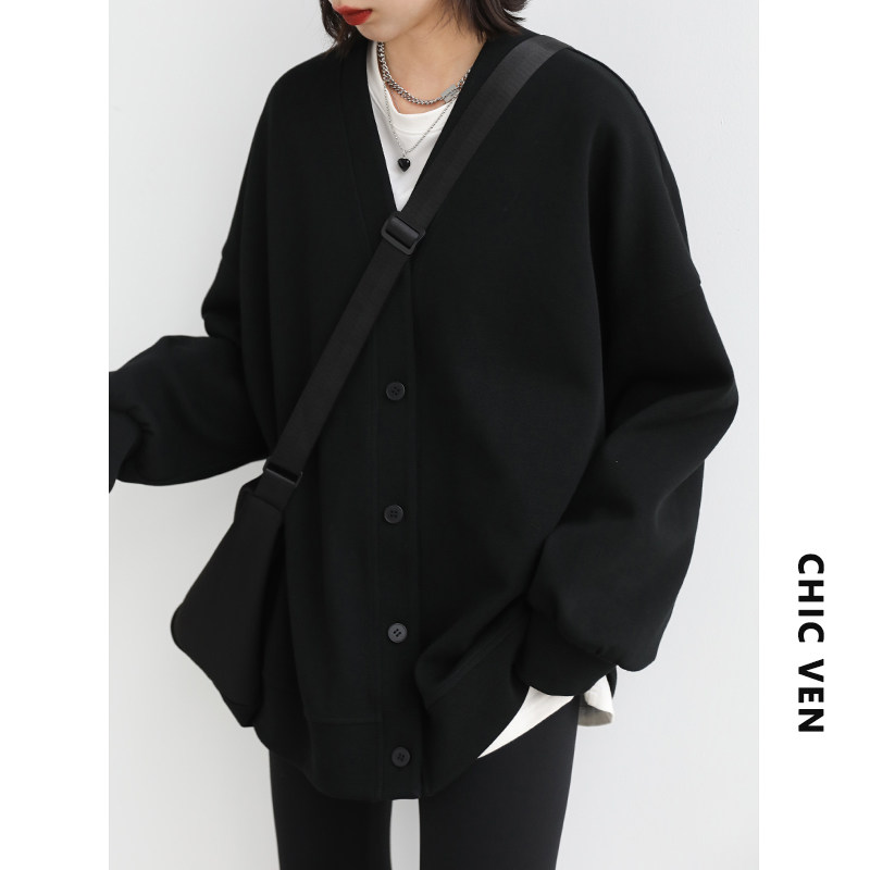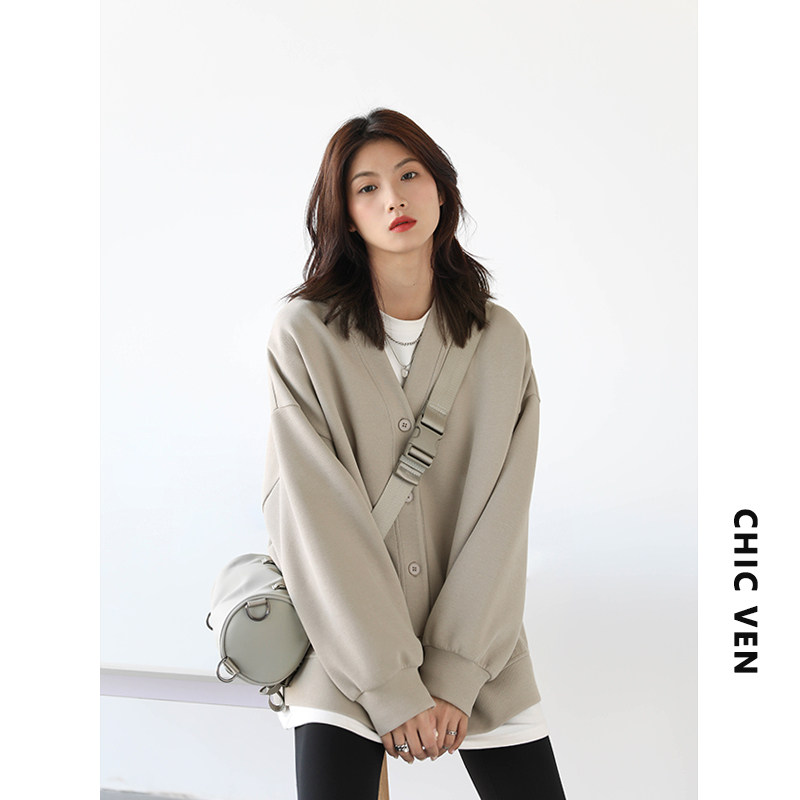 Длинный кардиган для отдыха, демисезонная куртка, свободный крой, V-образный вырез, средней длины