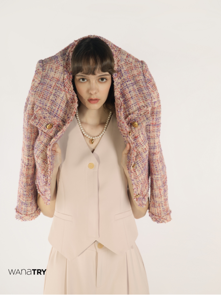 【Тот и тот же стиль Wu xin】 Wana попробуйте весенний новый женский керамический порошок, темперамент, украшенная норком