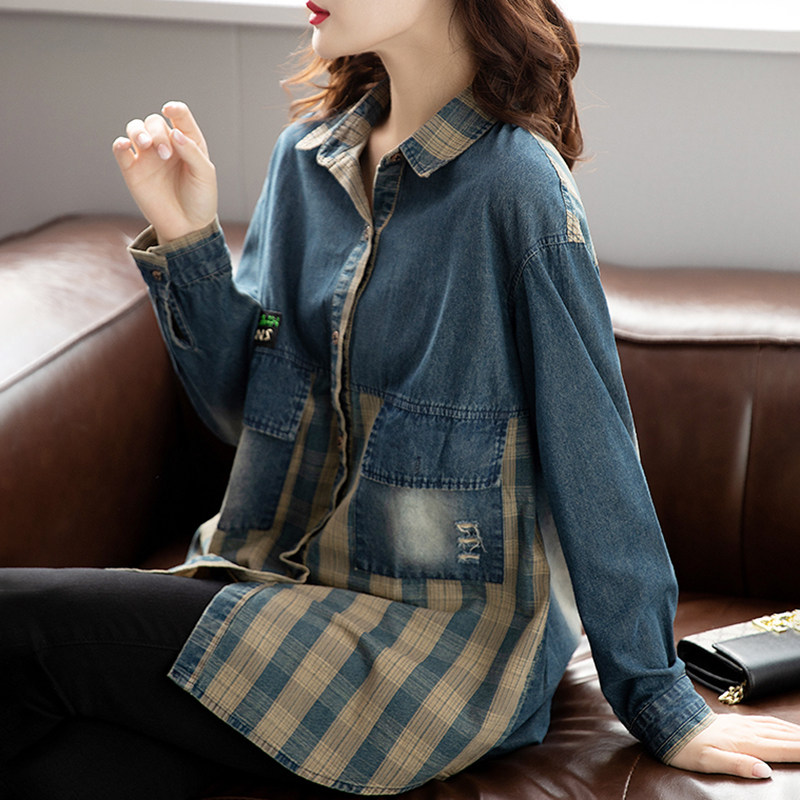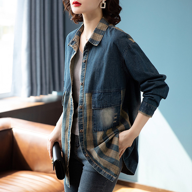 Джинсовая осенняя демисезонная модная куртка, длина миди, 2024 года, подходит для подростков