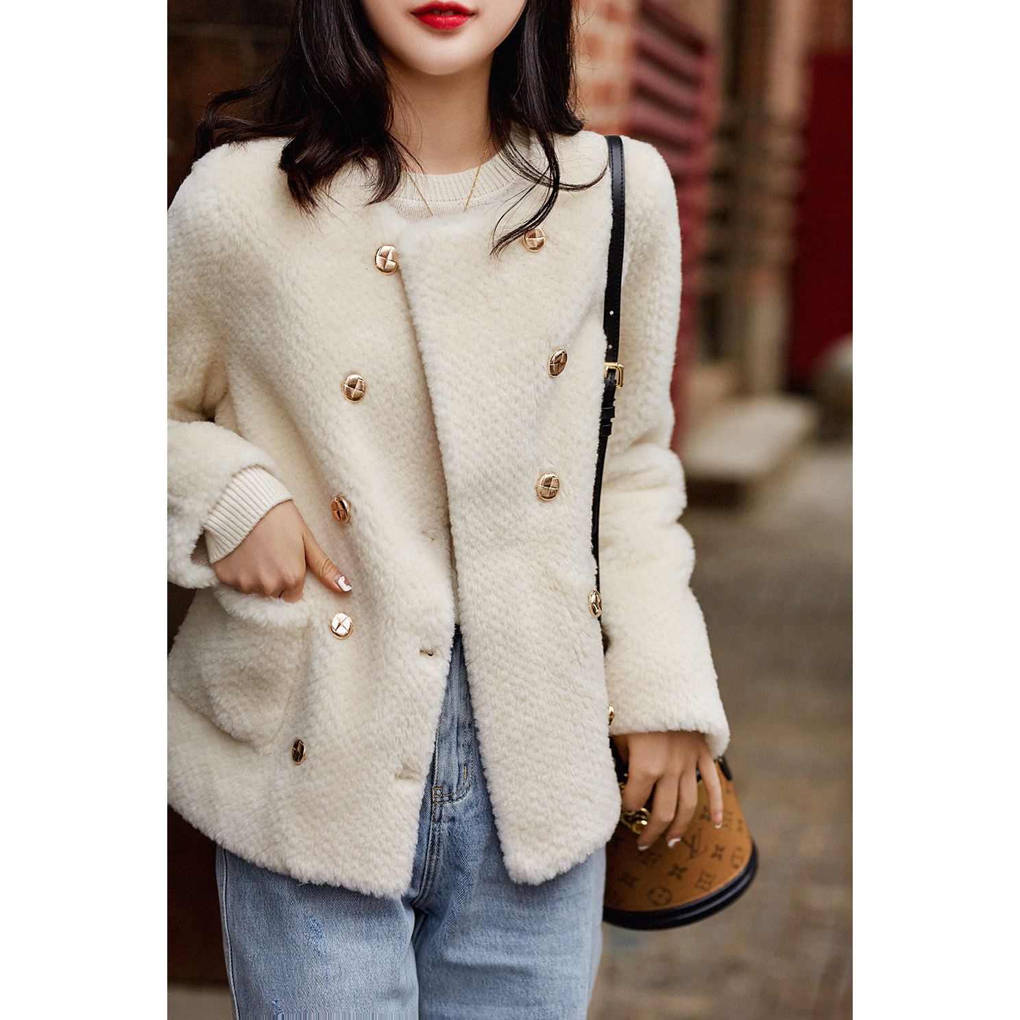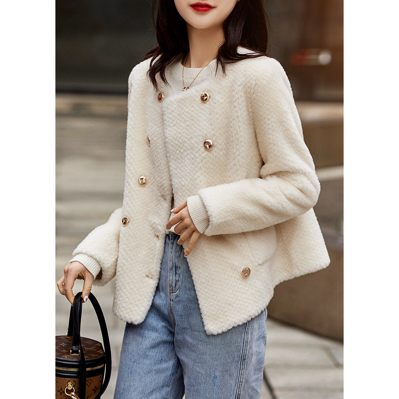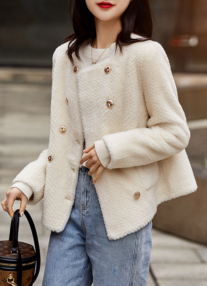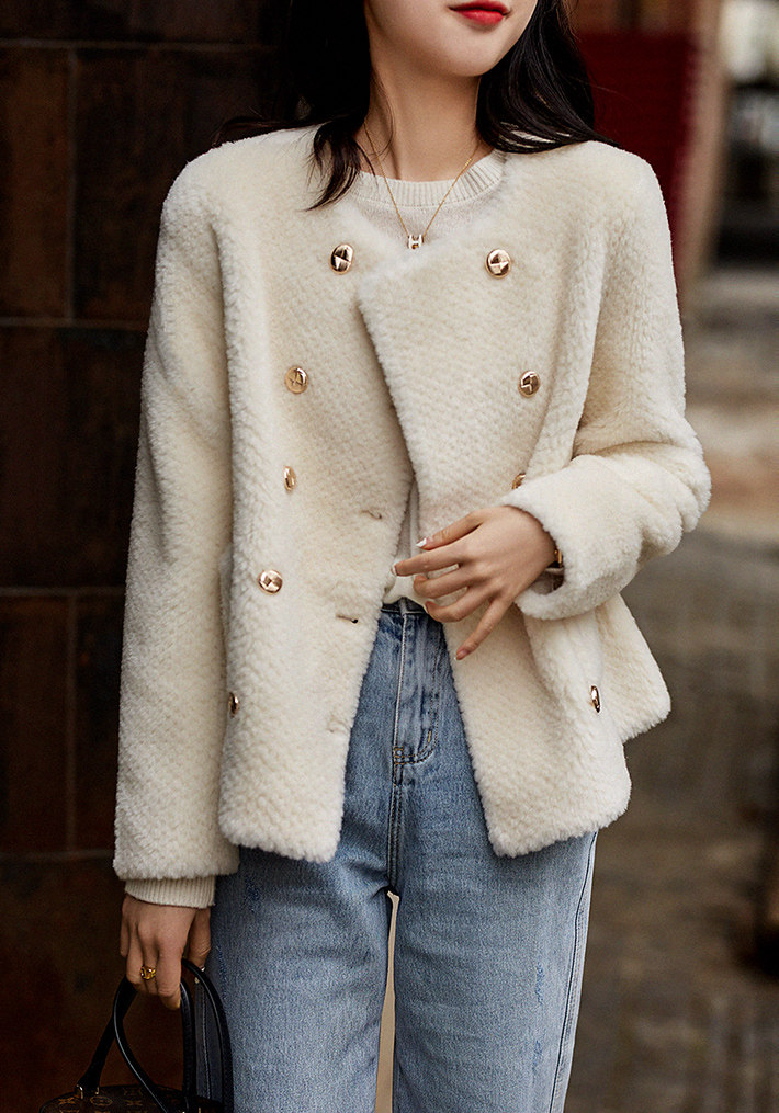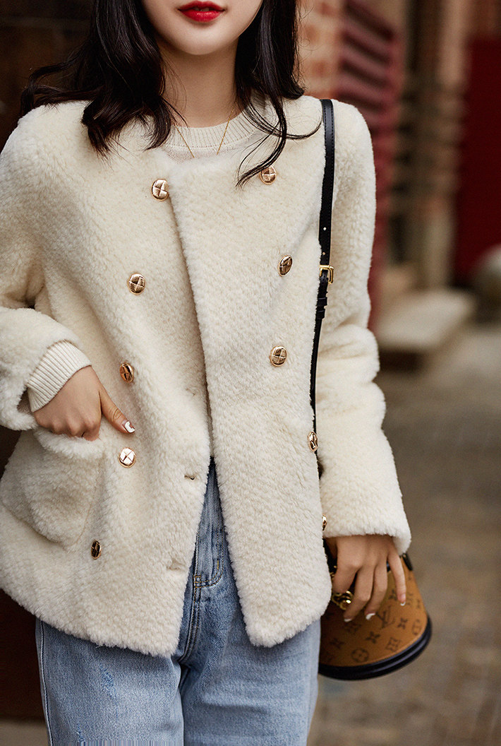 い Женские очаровательные шарм с двойным светом точкой прозрачной мех -в одном коротком ягненке волосатые набор женщин осень и зима Mlwt38774