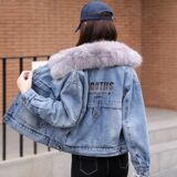 Флисовая джинсовая удерживающая тепло куртка, демисезонный пуховик, ветрозащитный плащ, увеличенная толщина, в корейском стиле