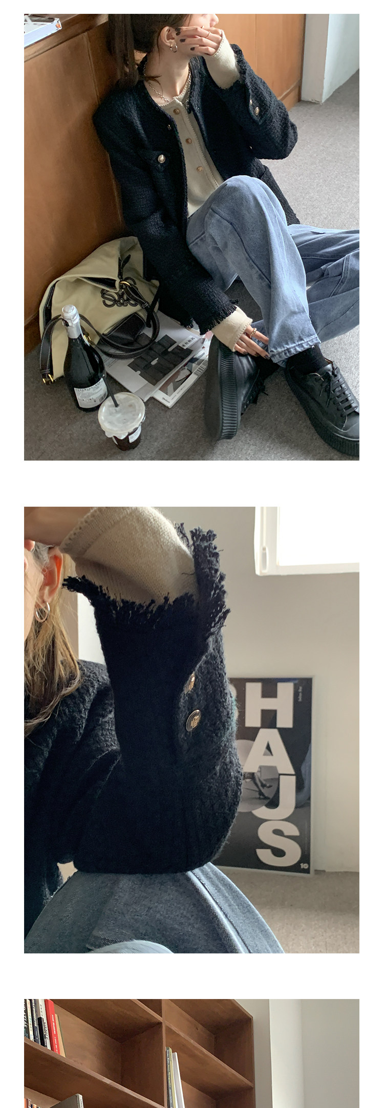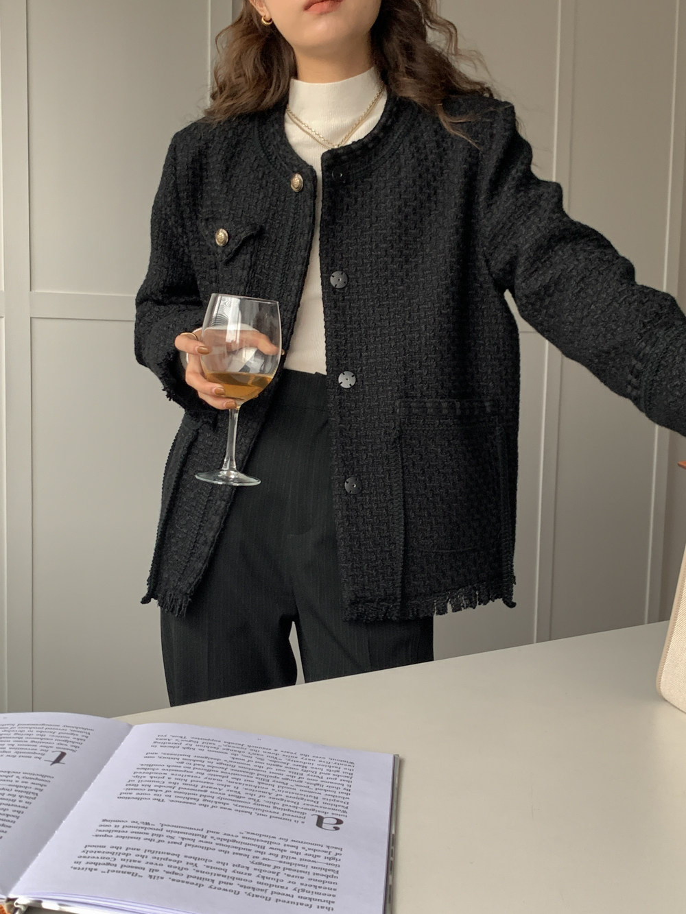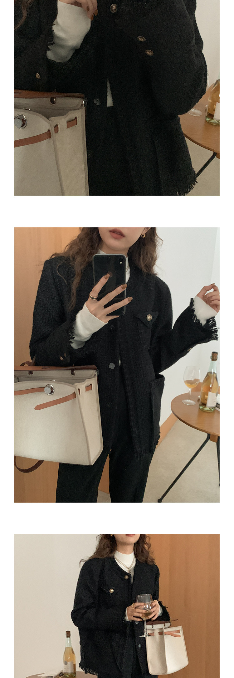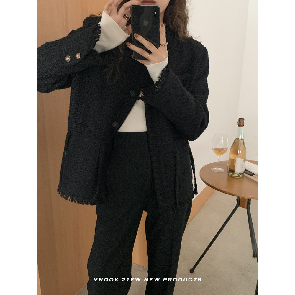 Шерстяная черная демисезонная плетеная куртка, кардиган, в стиле Шанель