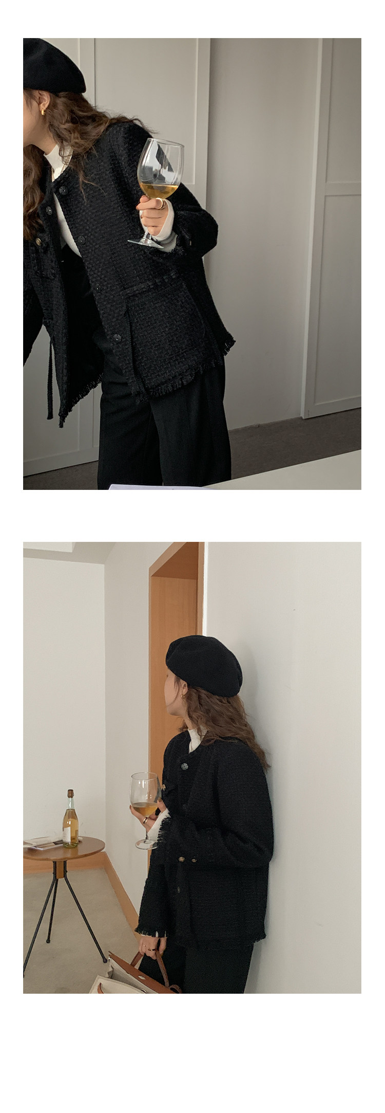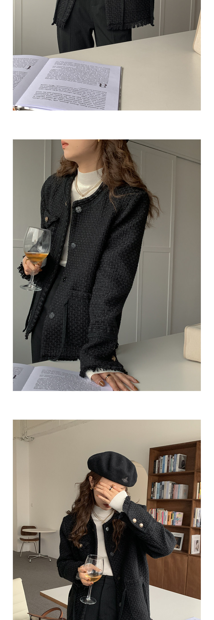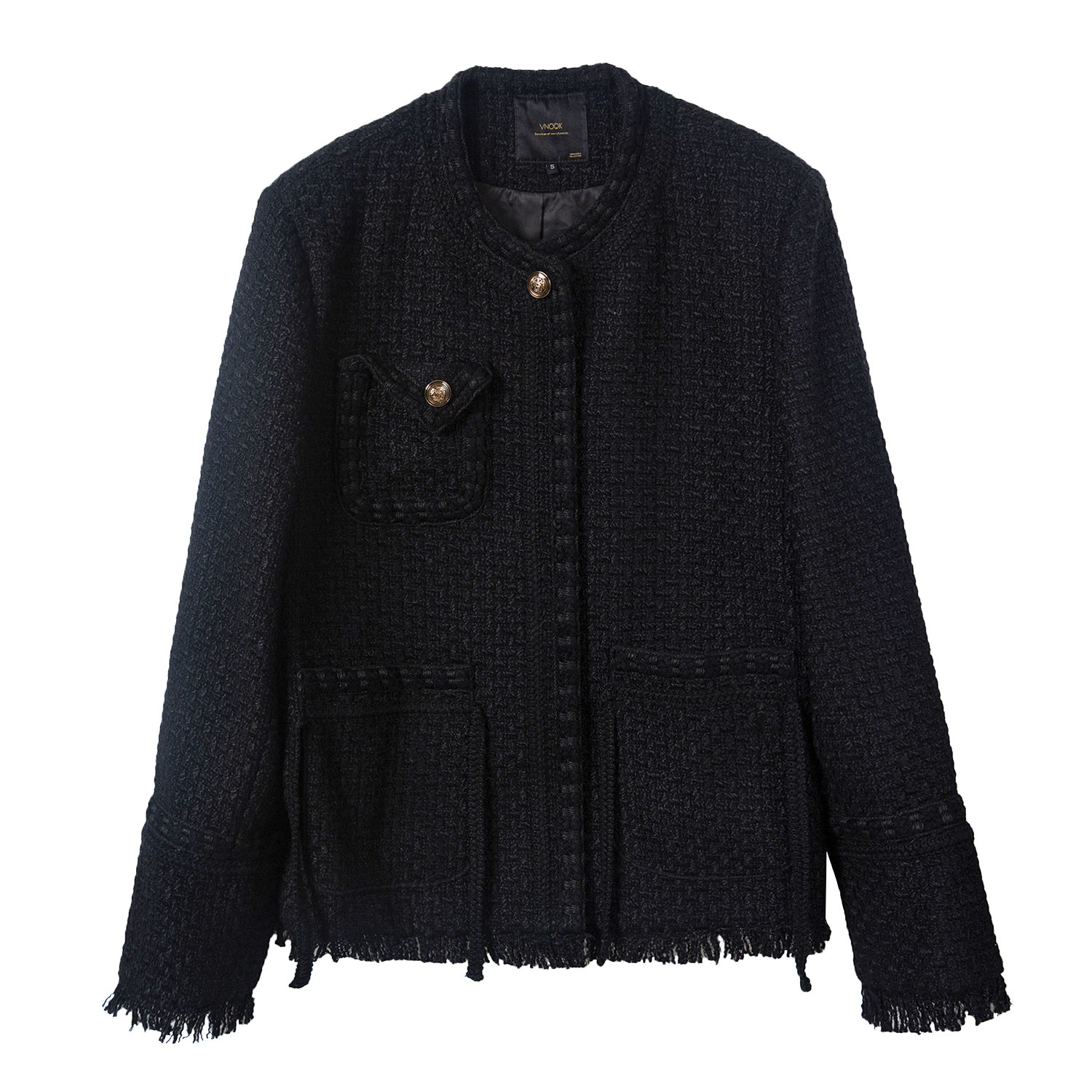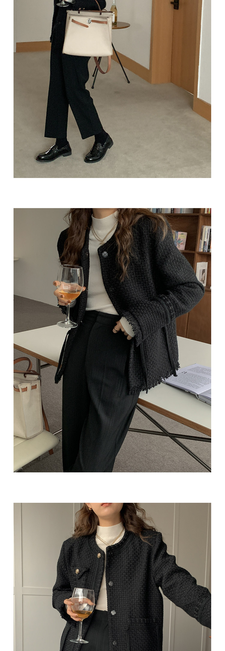 Шерстяная черная демисезонная плетеная куртка, кардиган, в стиле Шанель