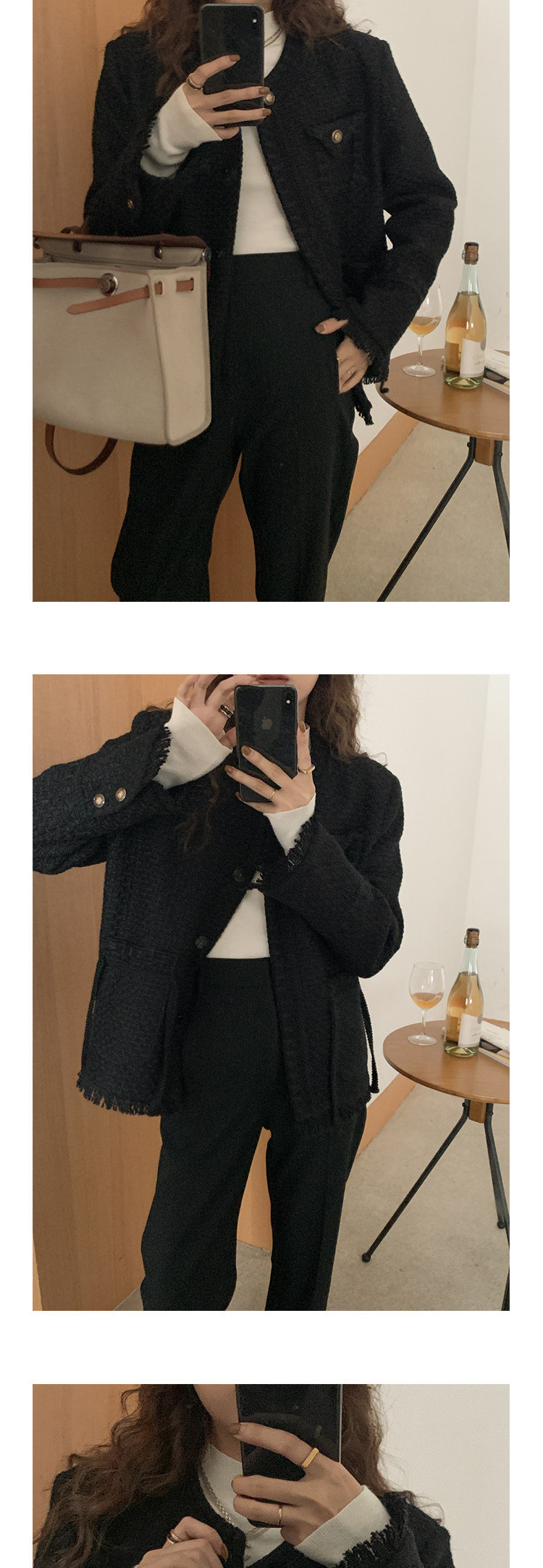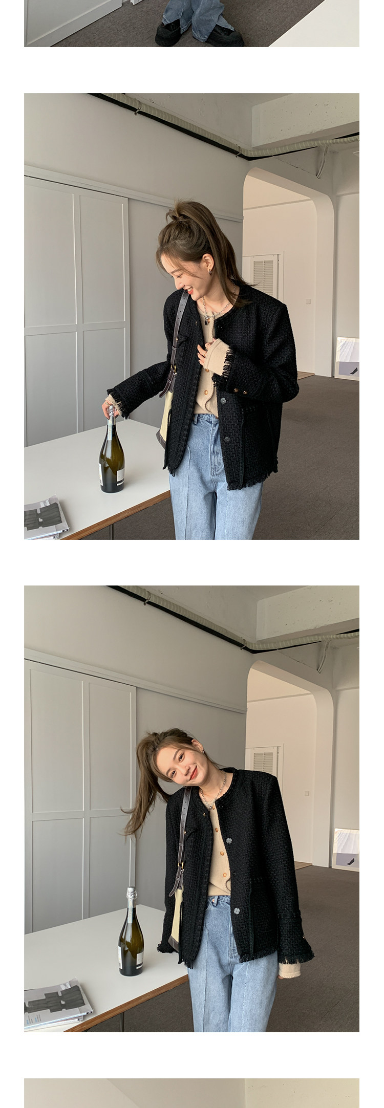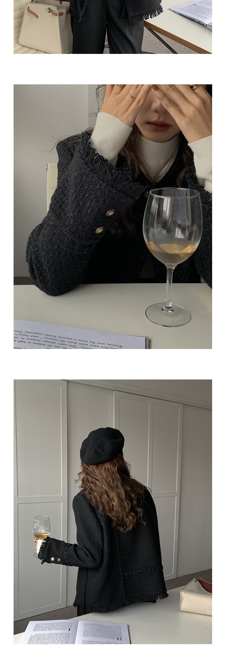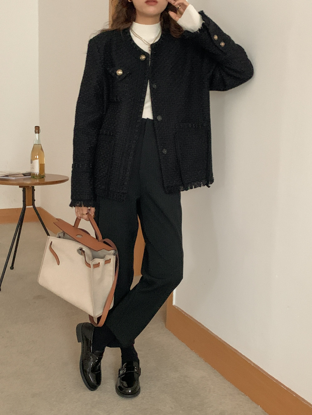 Шерстяная черная демисезонная плетеная куртка, кардиган, в стиле Шанель