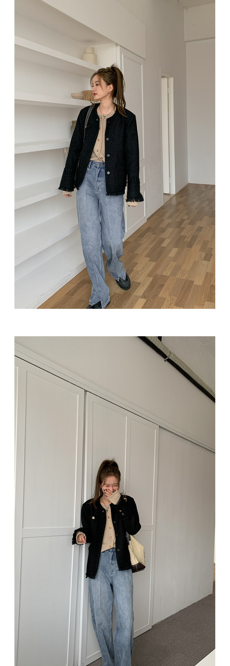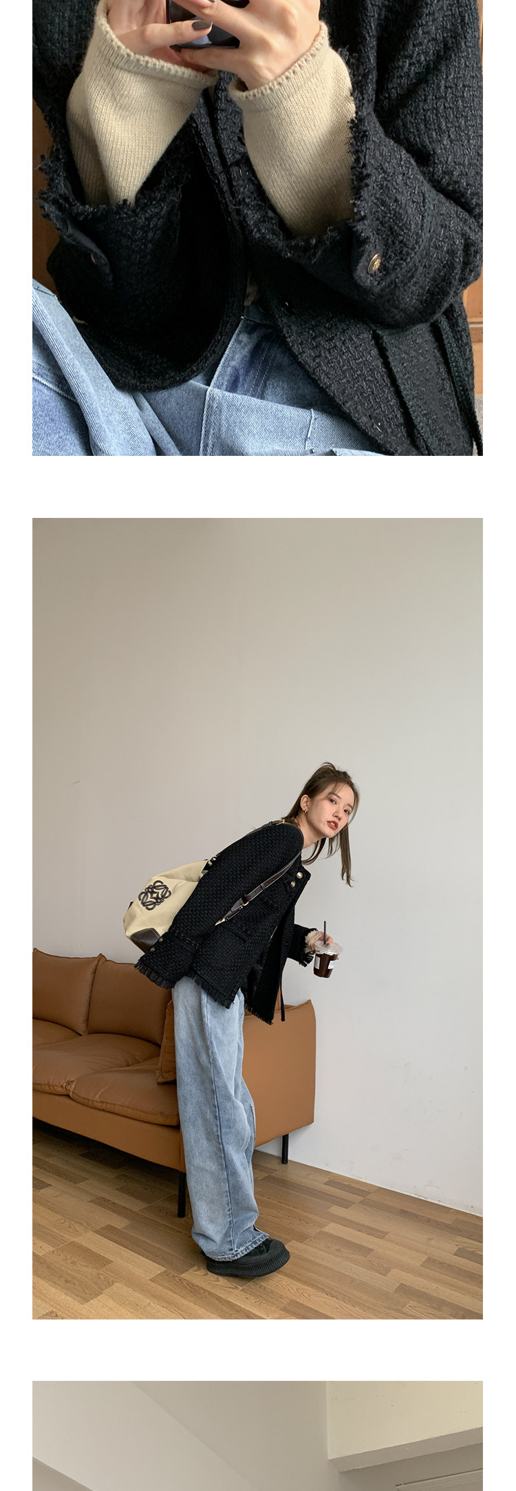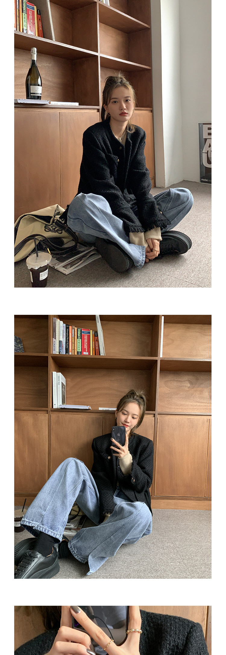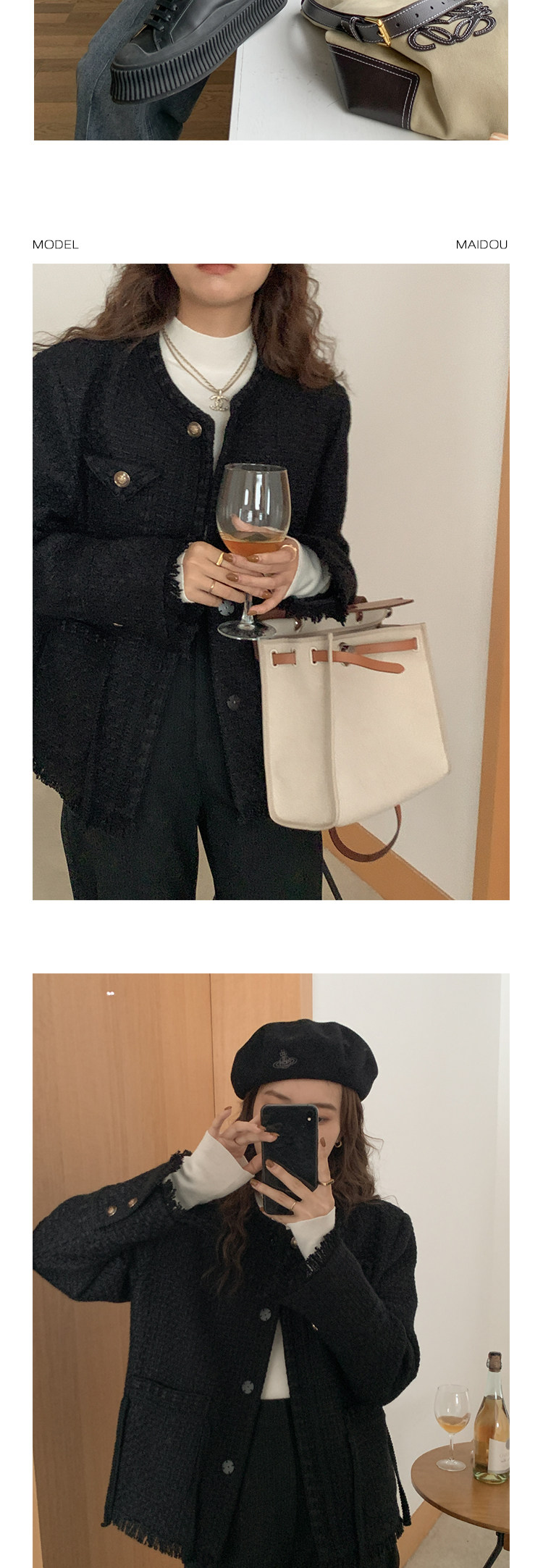 Шерстяная черная демисезонная плетеная куртка, кардиган, в стиле Шанель