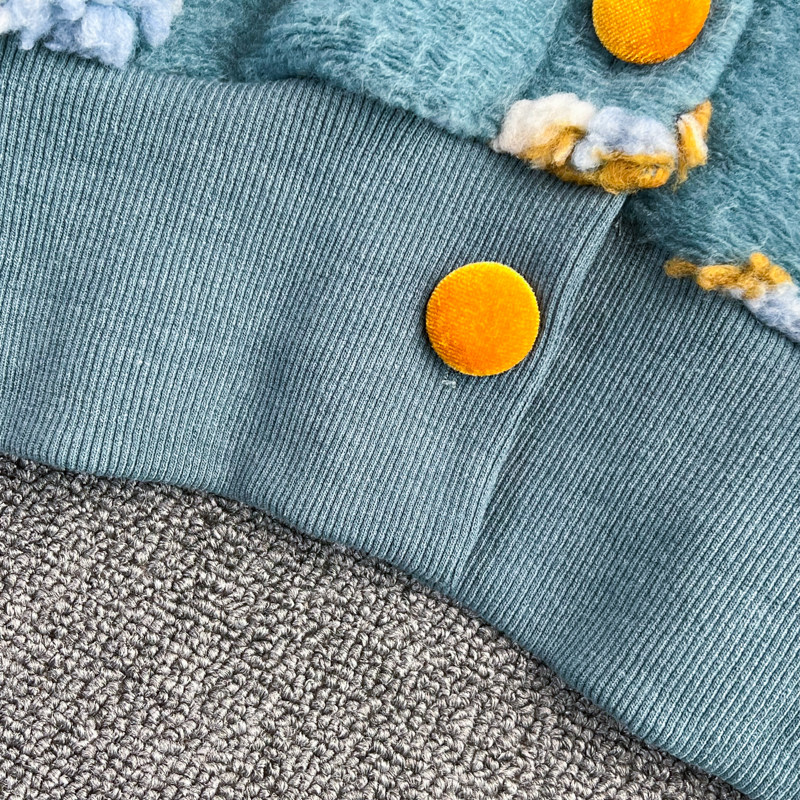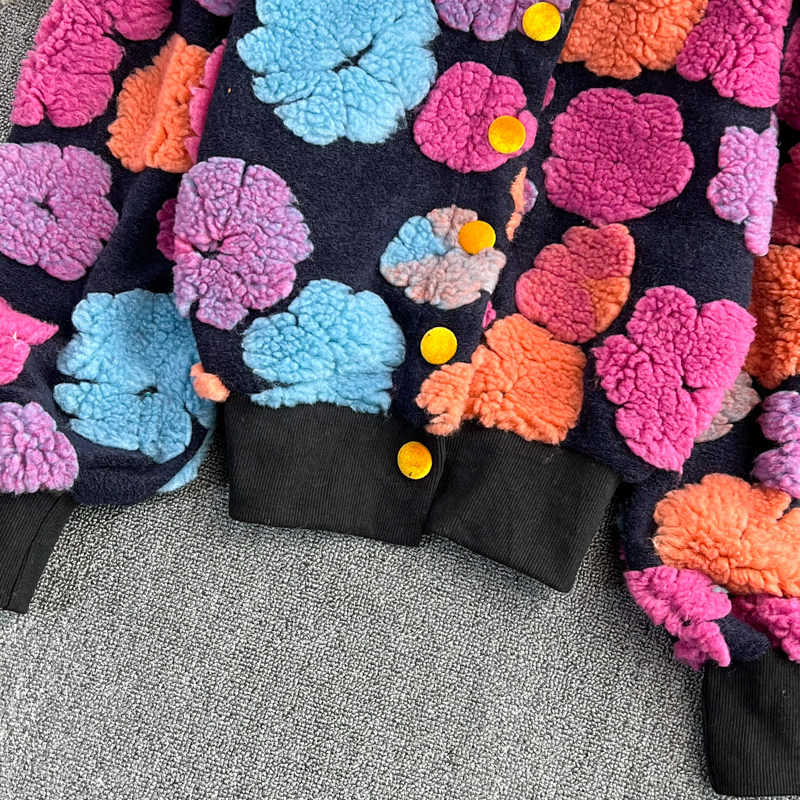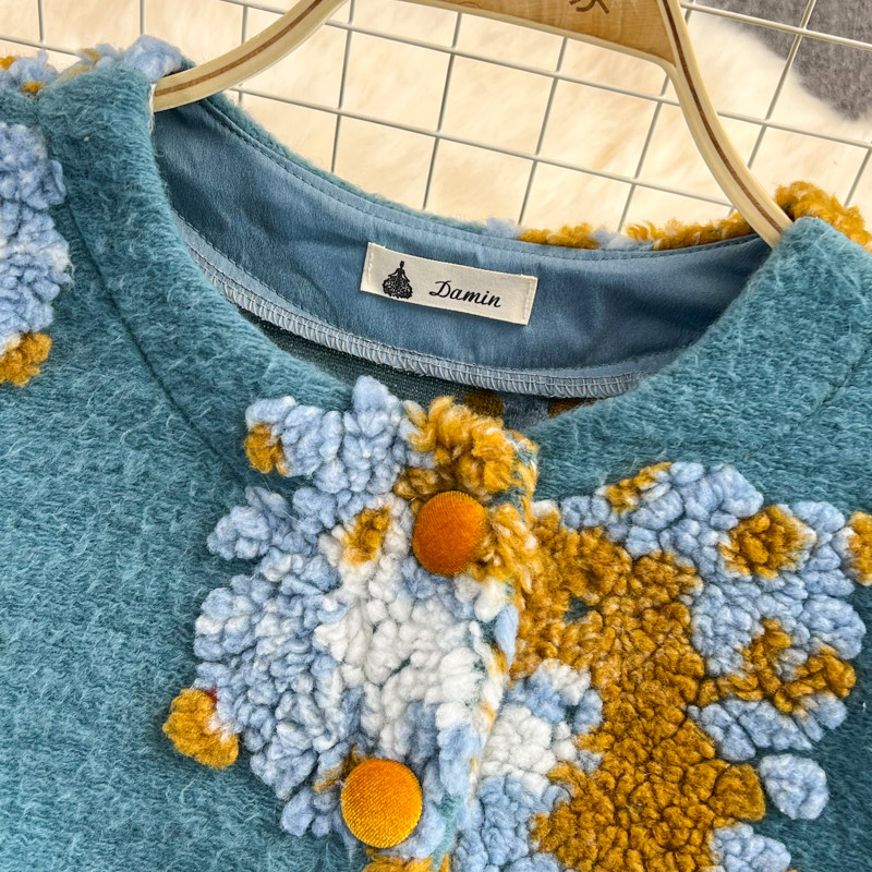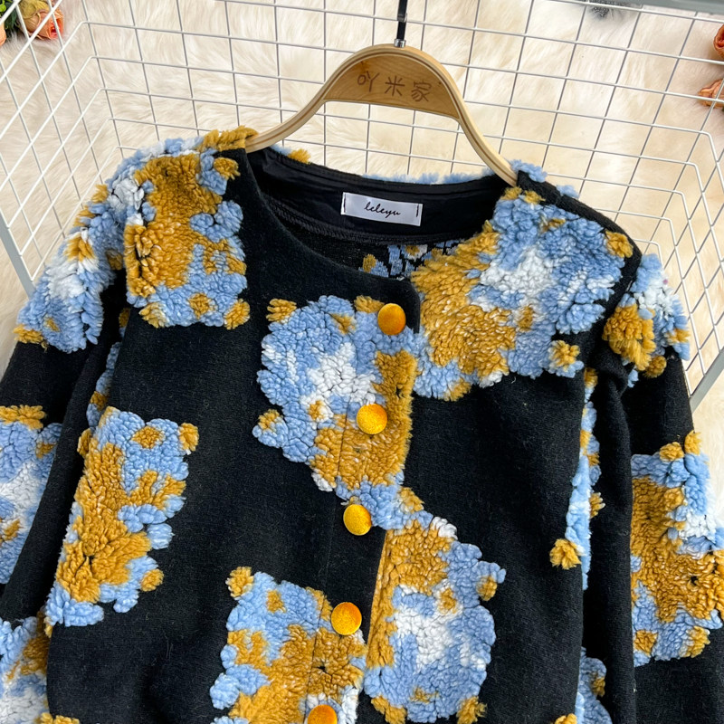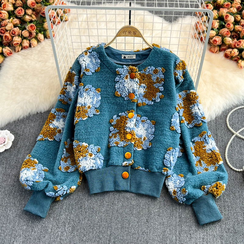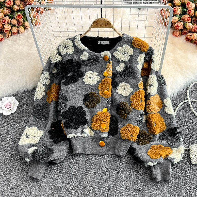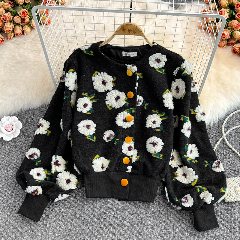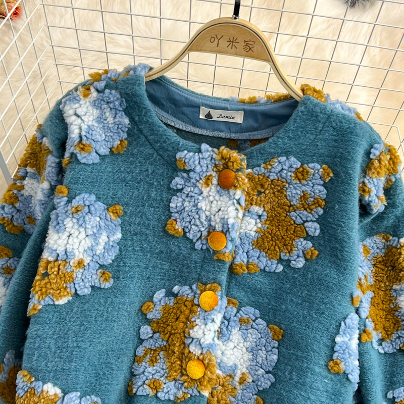 Южнокорейский демисезонный модный товар, ретро трехмерный бархатный кардиган, шерстяное пальто, куртка, в цветочек