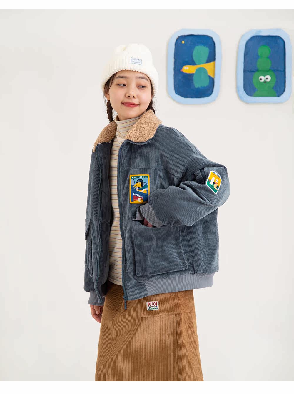 Двухэтажный динозавр, демисезонная куртка, съемный утепленный воротник, облако