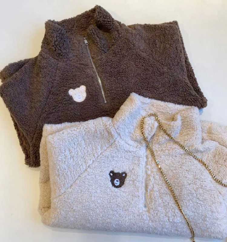 Бархатная толстовка с молнией, с вышивкой, с медвежатами, на молнии, свободный крой