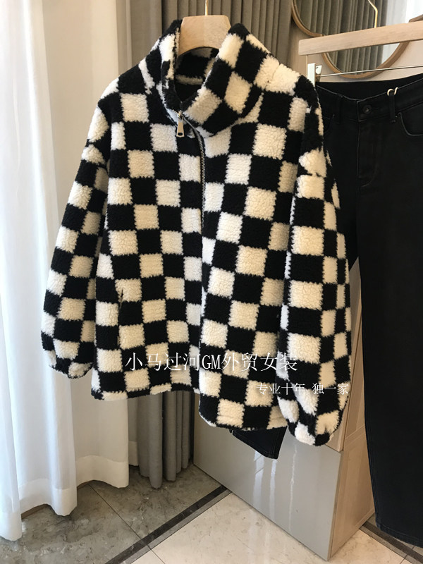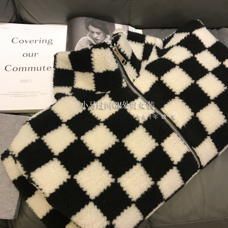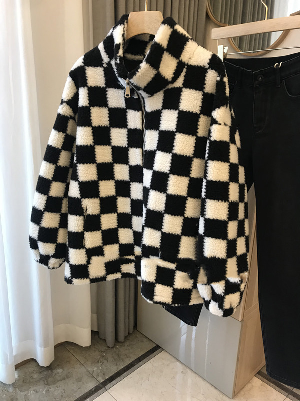 Этот не будет разочарован ~ закройте глаза ~ Черно -белая шахматная сетка Имитация ягненка Стоям воротнич