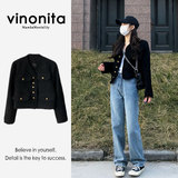 Черная короткая осенняя дизайнерская куртка, в стиле Шанель, изысканный стиль, тренд сезона, свободный крой, 2023