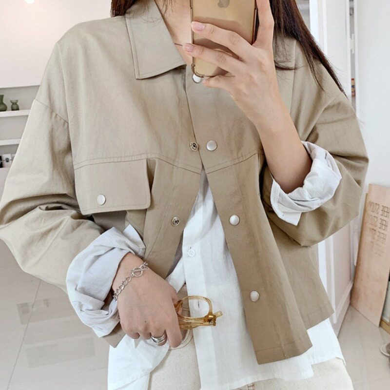 Весенняя куртка, в корейском стиле, тренд сезона, воротник поло, в стиле Шанель