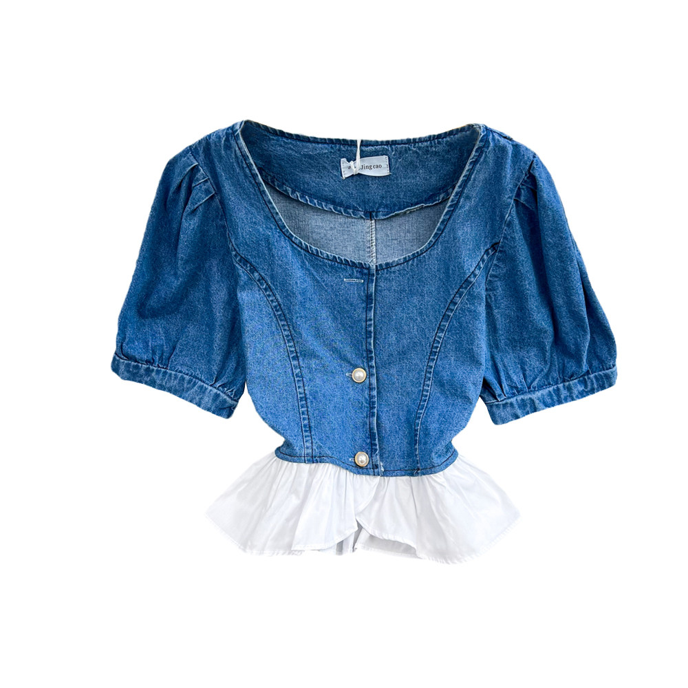 Рубашка, дизайнерская летняя одежда, приталенный короткий корсет, в корейском стиле, квадратный вырез, тренд сезона