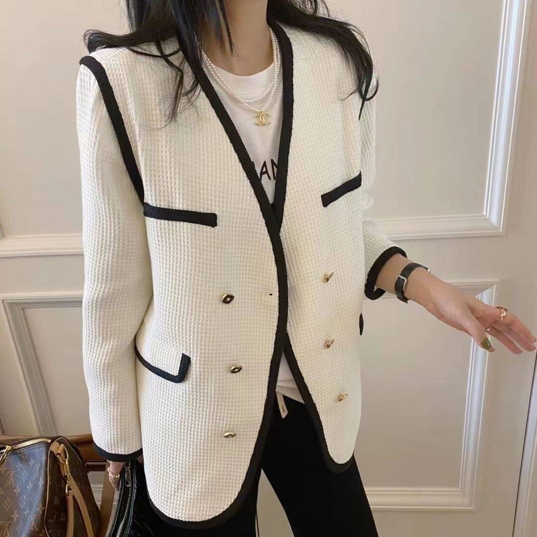 Весенняя элитная куртка, в стиле Шанель, французский стиль, V-образный вырез