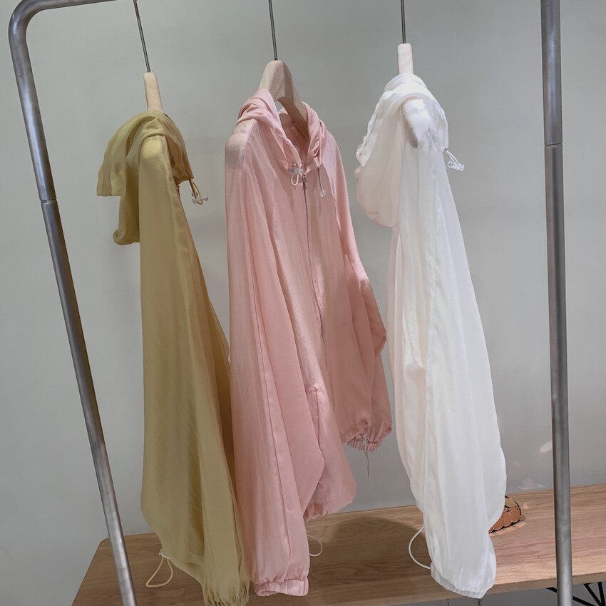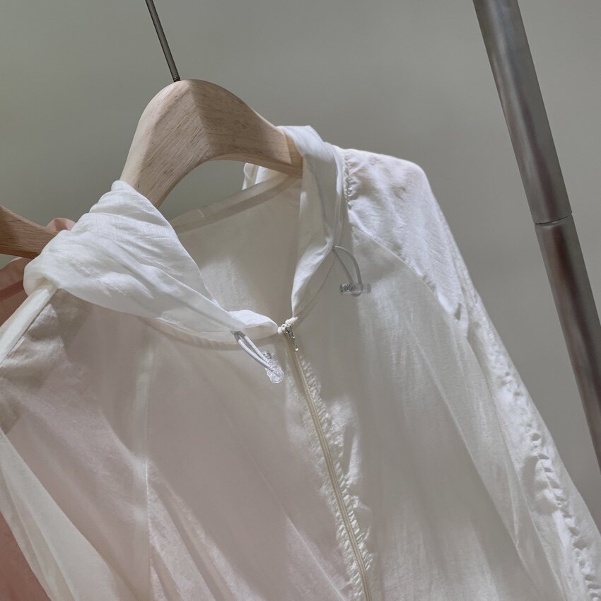Airy Tencel с капюшоном и шнурком, белая однотонная повседневная тонкая короткая куртка с солнцезащитным кремом и топом на молнии для женщин