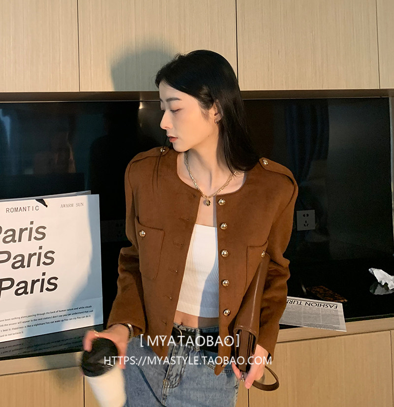 Цветная осенняя куртка, осенний замшевый комплект с круглым воротником, подходит для подростков