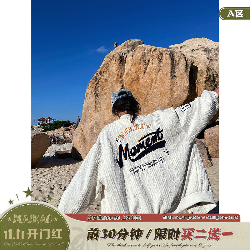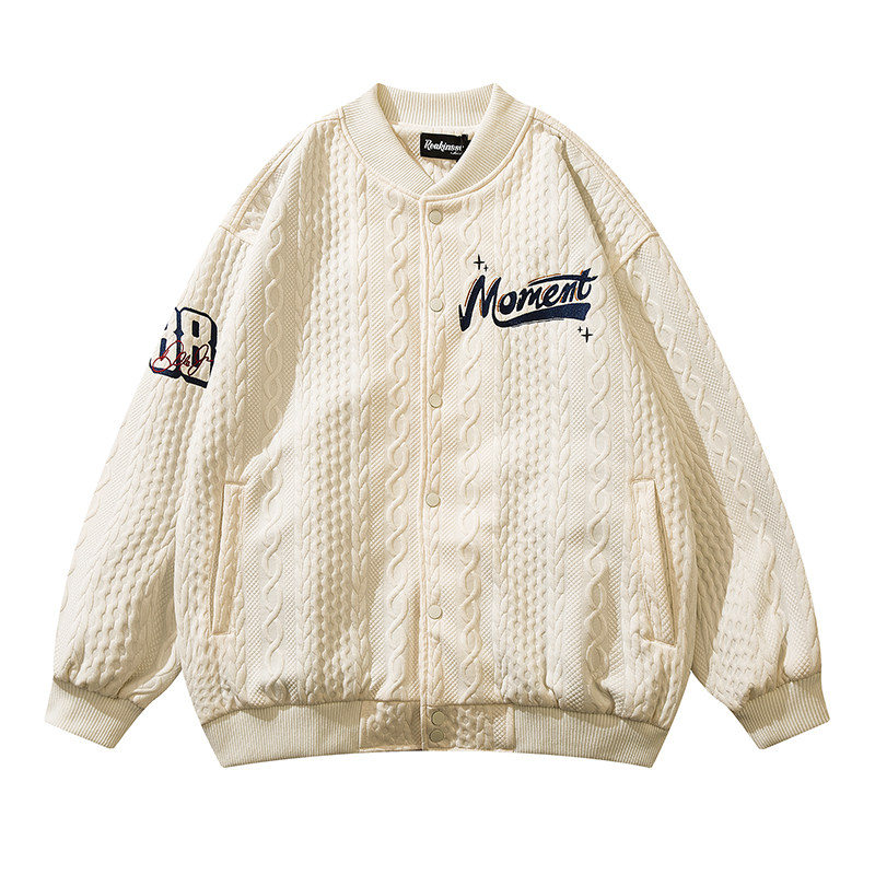 Ретро трикотажная куртка, кардиган, рубашка, бейсбольная осенняя форма, в американском стиле, оверсайз
