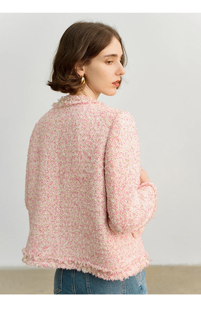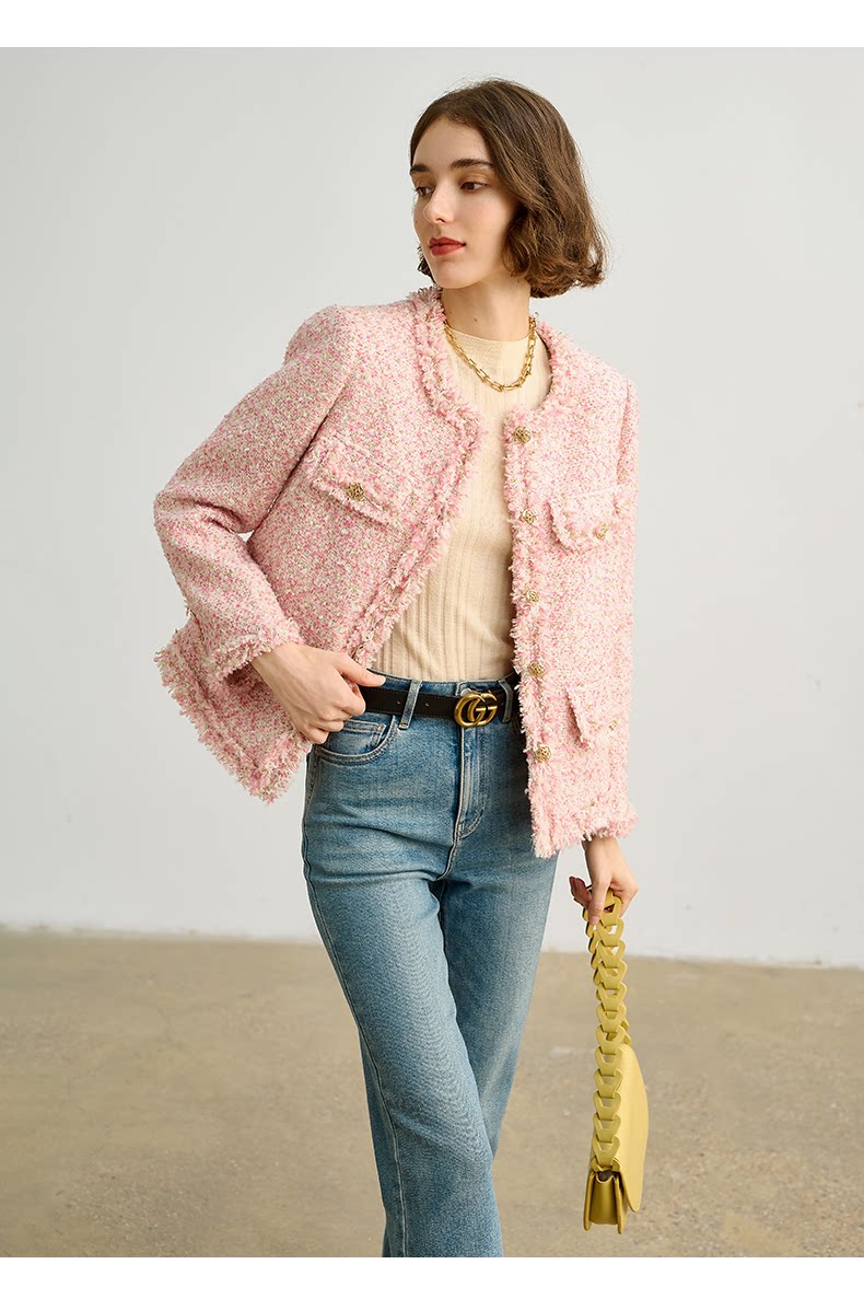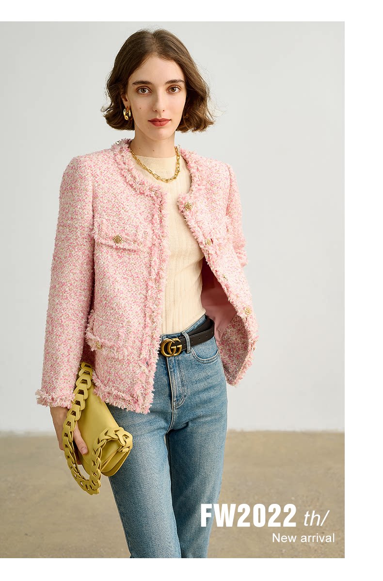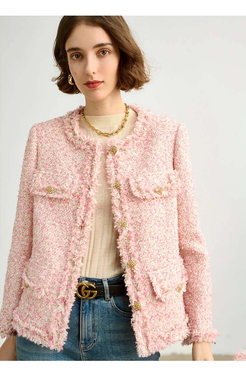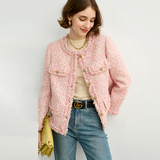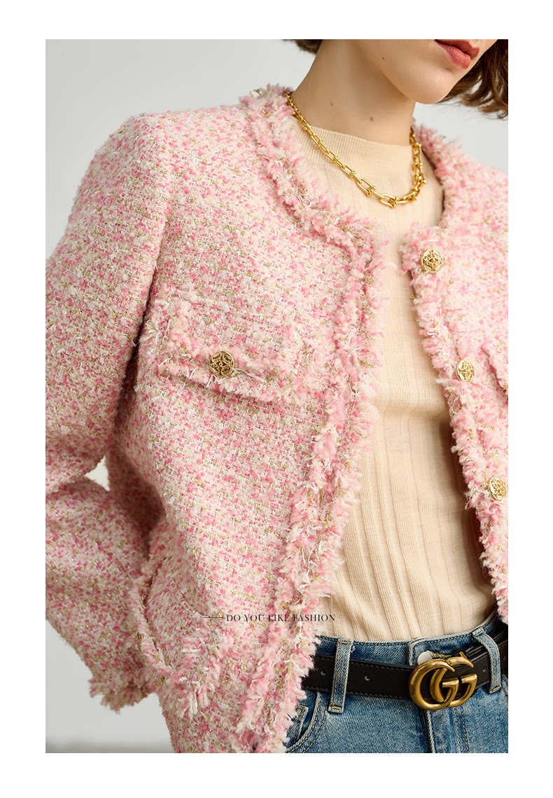 Розовая дизайнерская куртка, изысканный стиль, в стиле Шанель, 2023, французский стиль