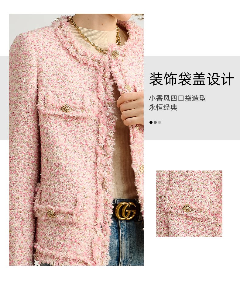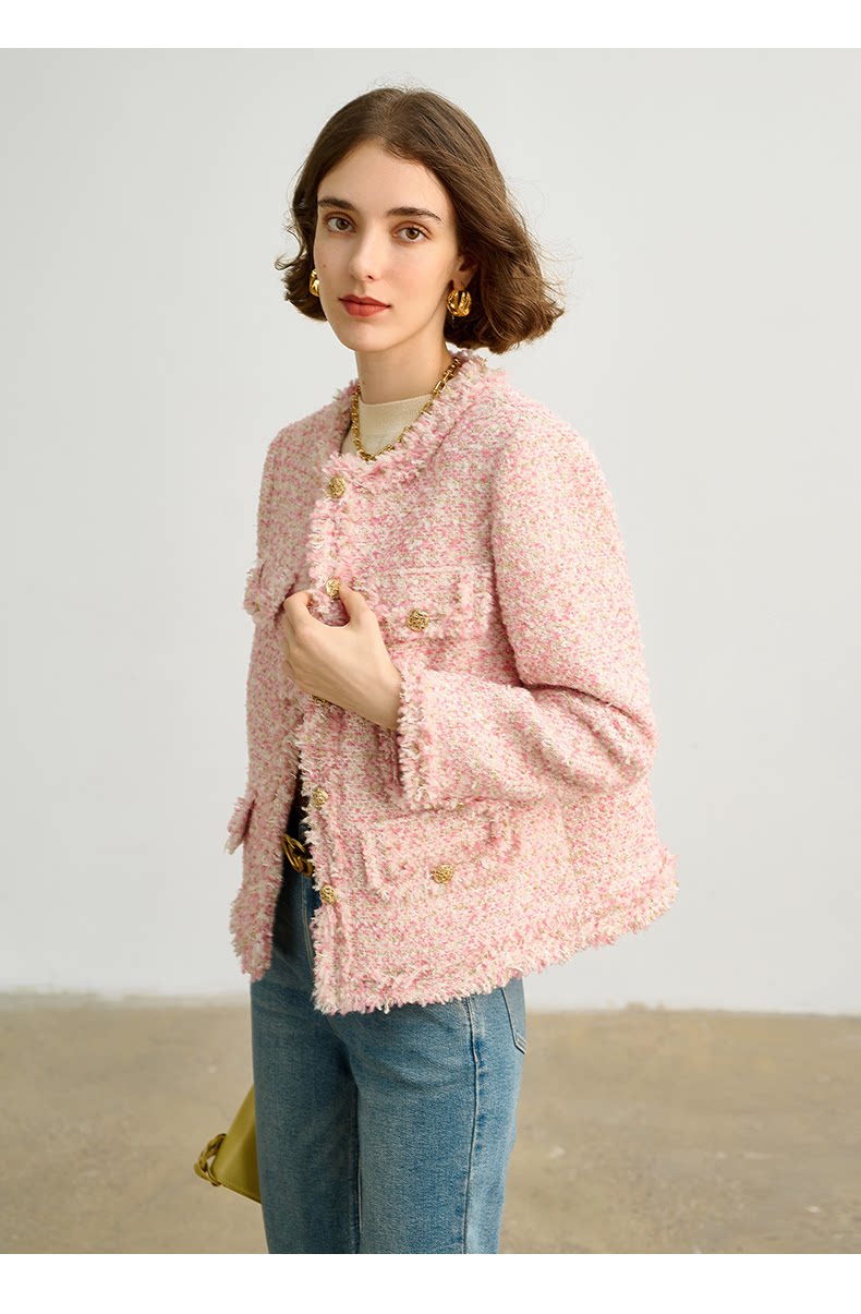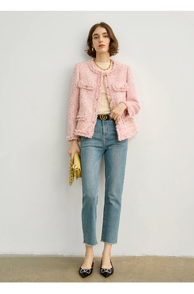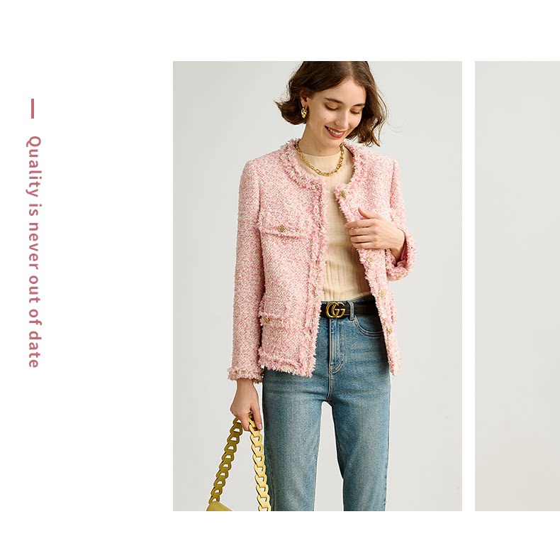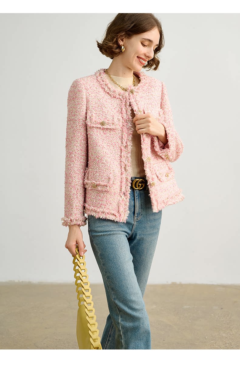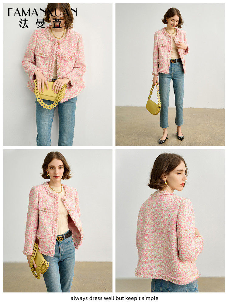 Розовая дизайнерская куртка, изысканный стиль, в стиле Шанель, 2023, французский стиль