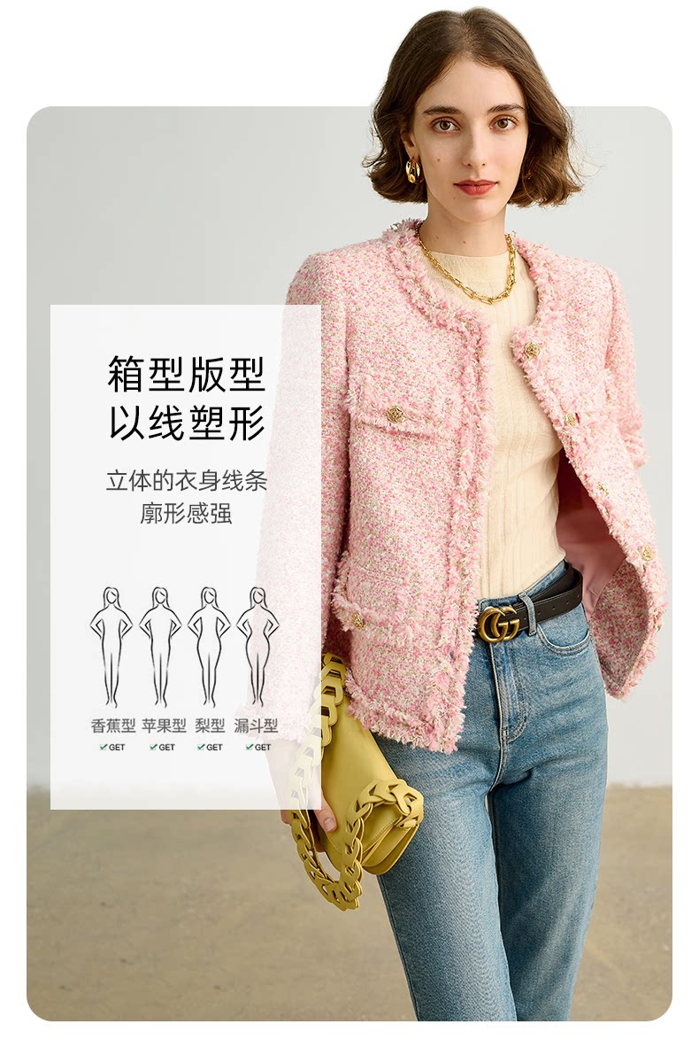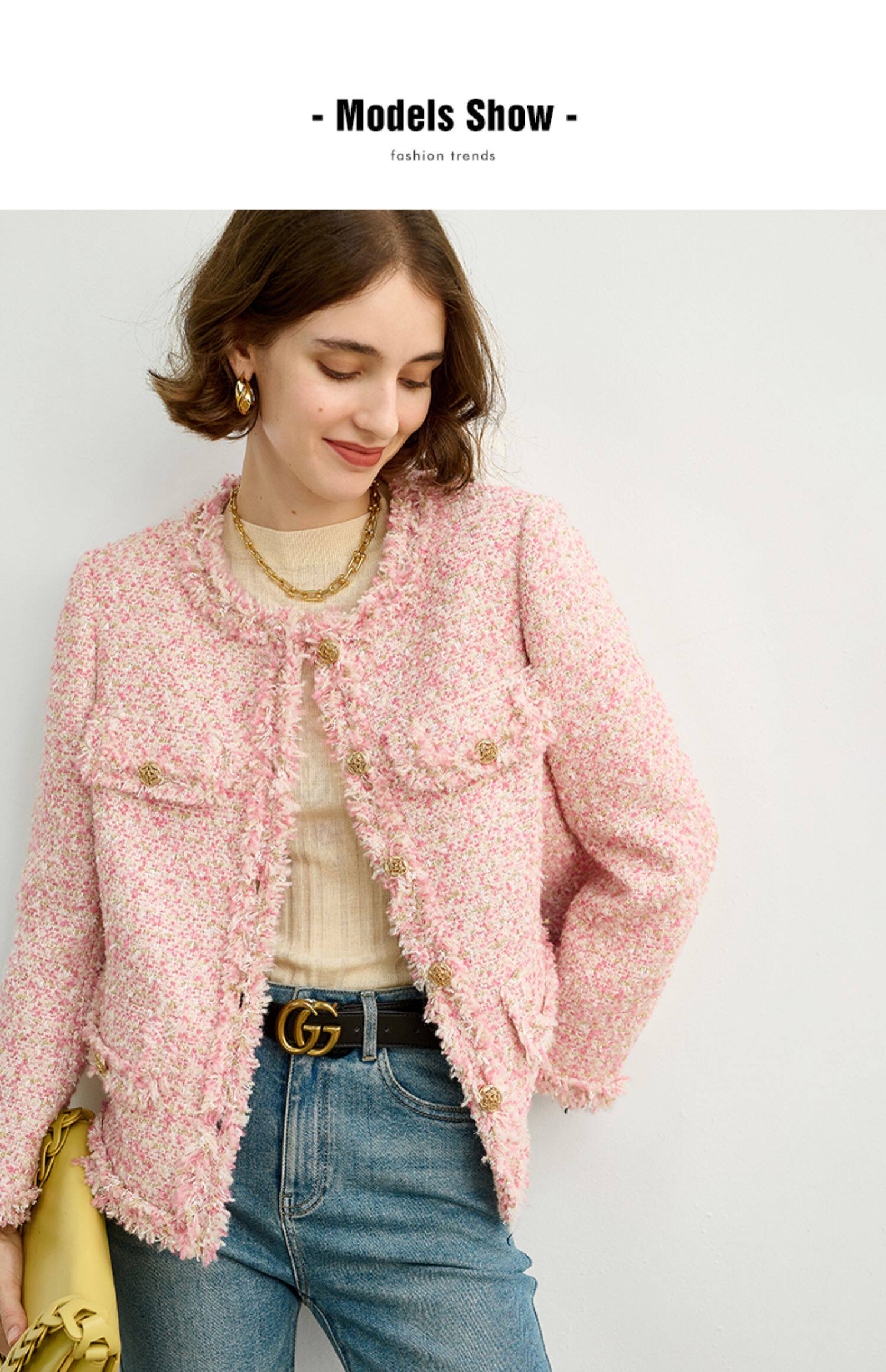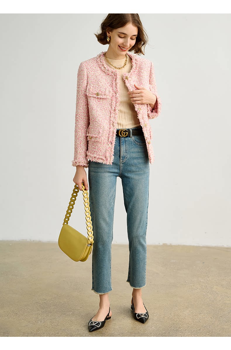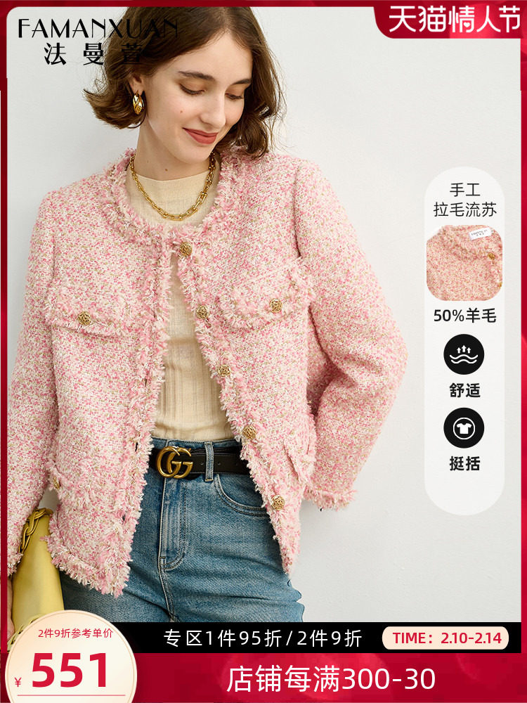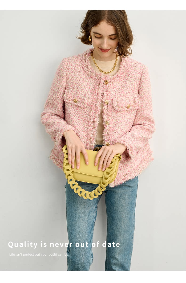 Розовая дизайнерская куртка, изысканный стиль, в стиле Шанель, 2023, французский стиль
