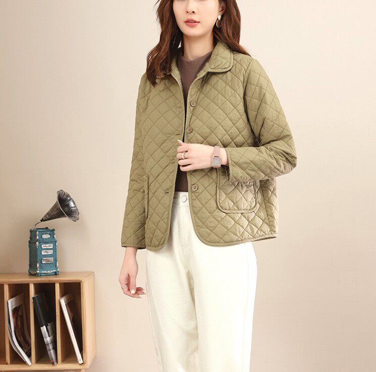 Короткий пуховик с ромбовидным узором с пухом, легкая и тонкая демисезонная куртка