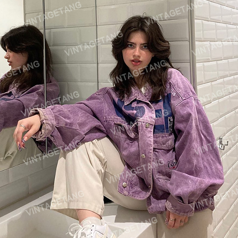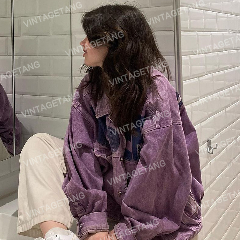 Tide, ретро джинсовая сиреневая брендовая куртка, в американском стиле