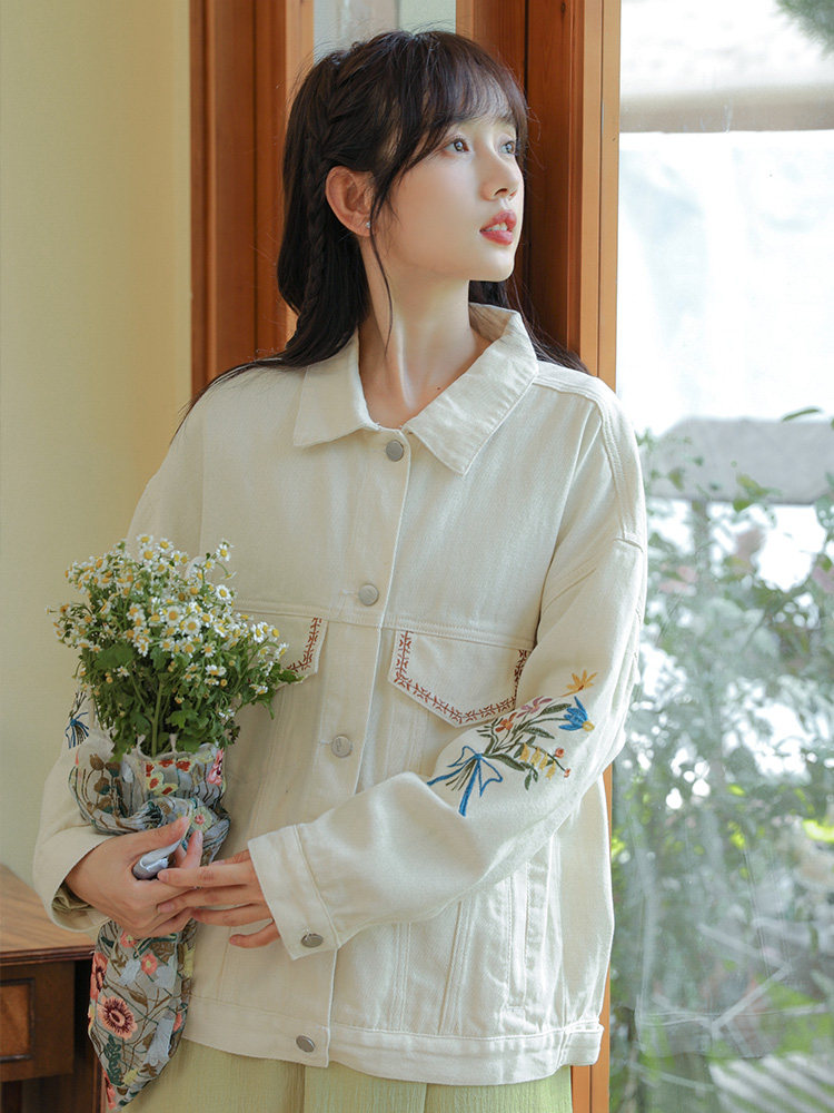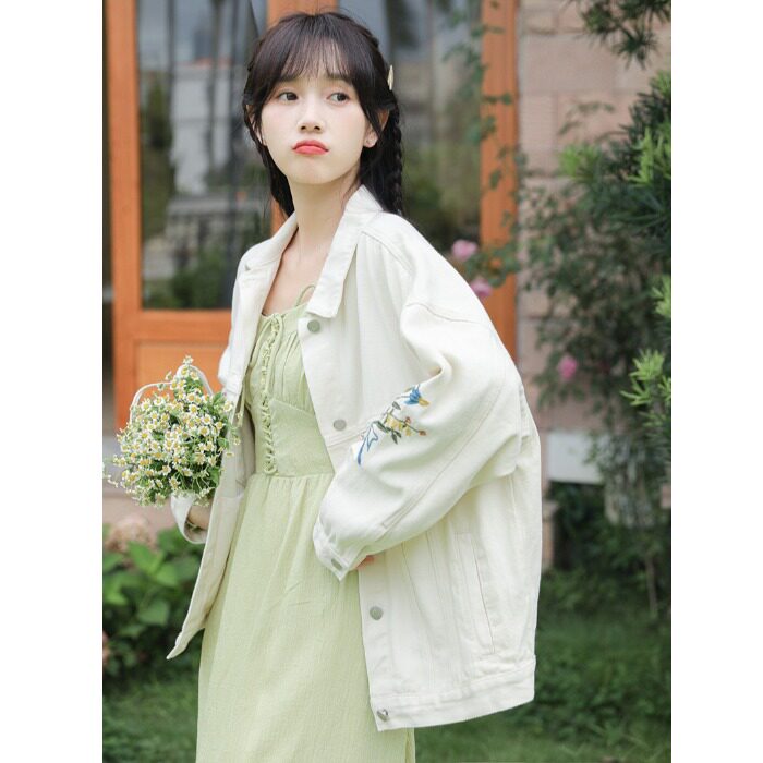 Свежая милая джинсовая весенняя модная куртка, изысканный стиль, с вышивкой, тренд сезона, оверсайз