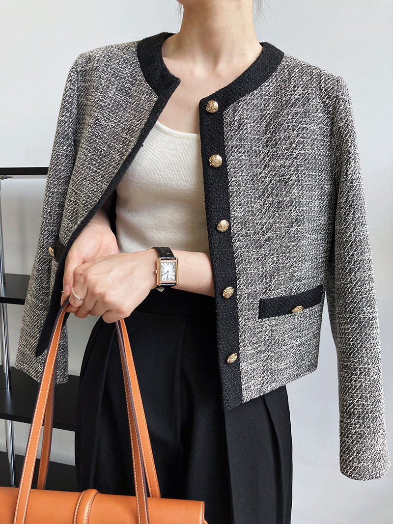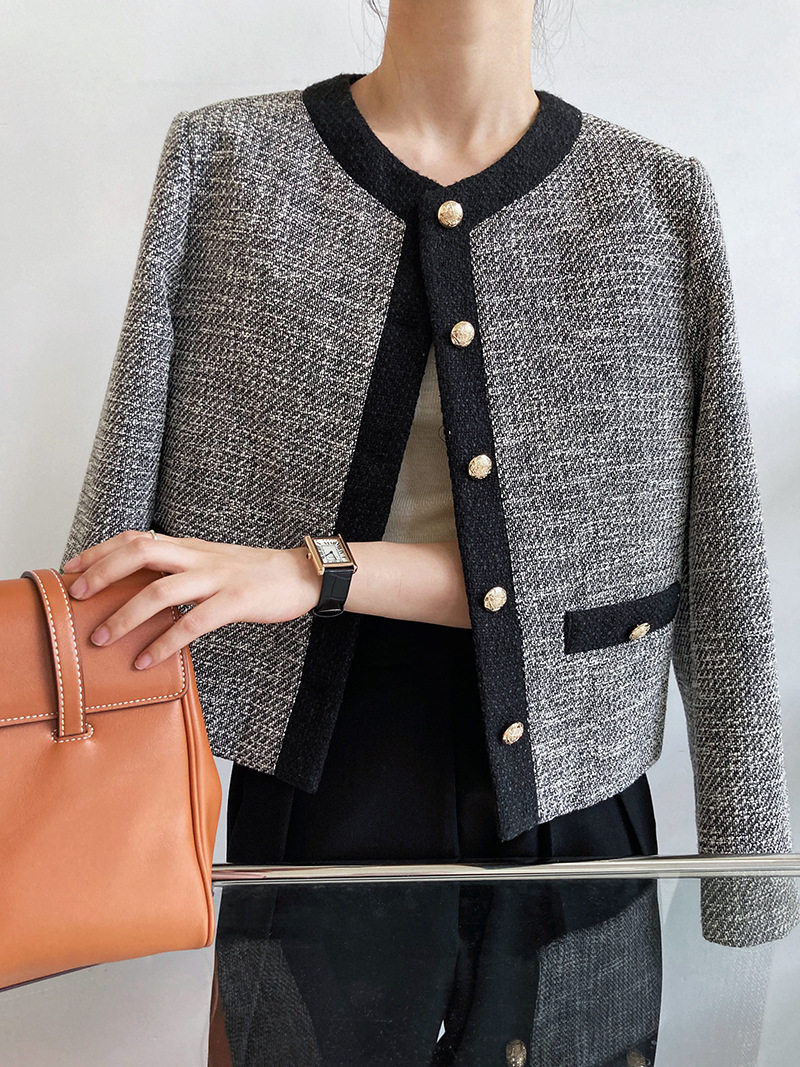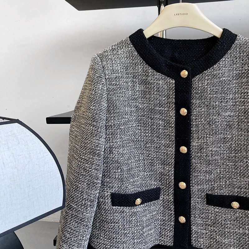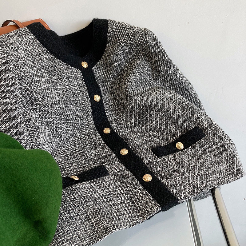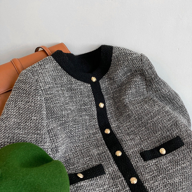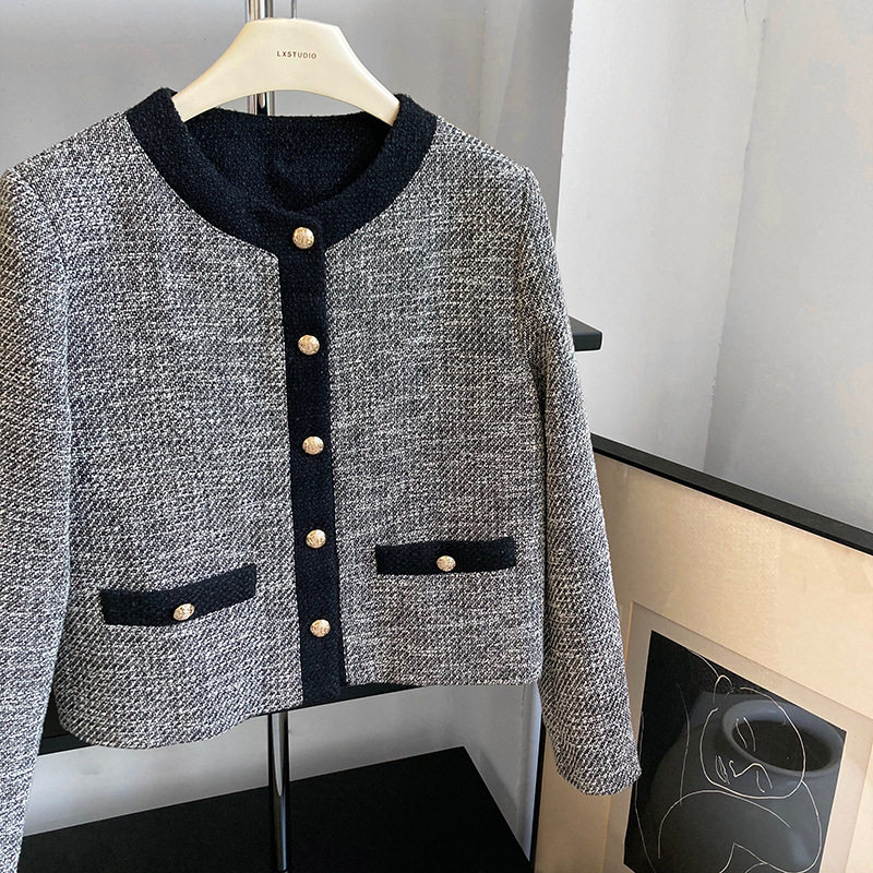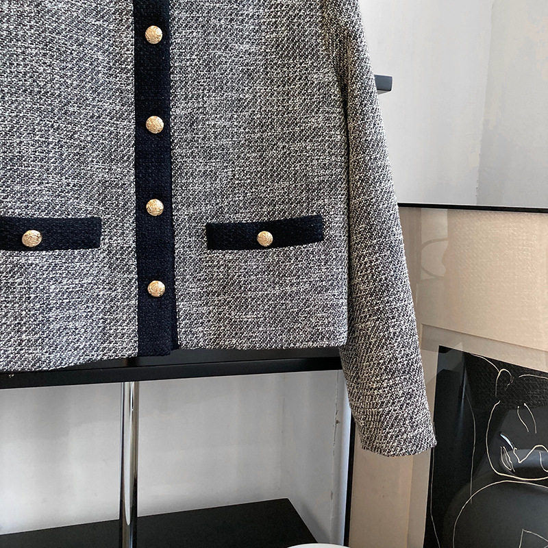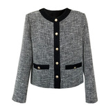 Осенняя ретро короткая куртка, французский стиль, в стиле Шанель, изысканный стиль, яркий броский стиль
