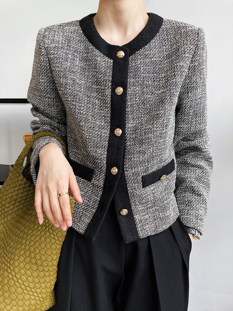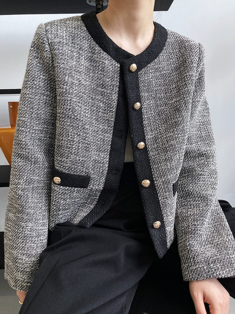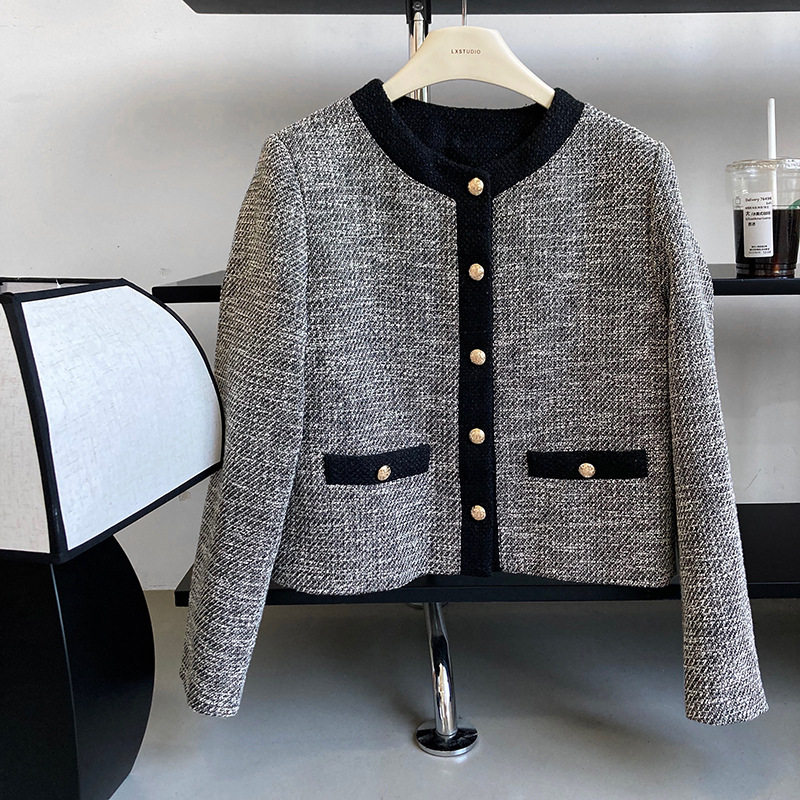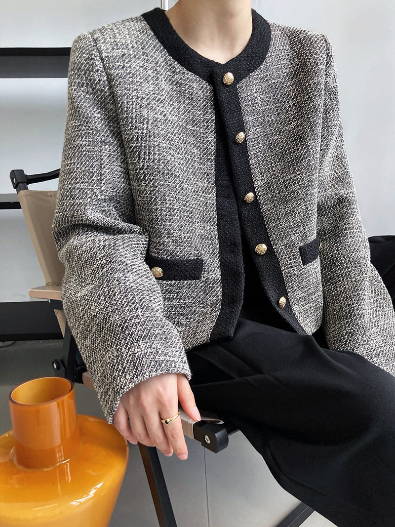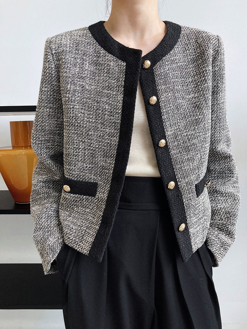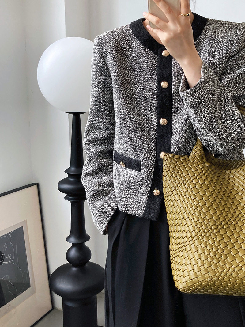 Осенняя ретро короткая куртка, французский стиль, в стиле Шанель, изысканный стиль, яркий броский стиль