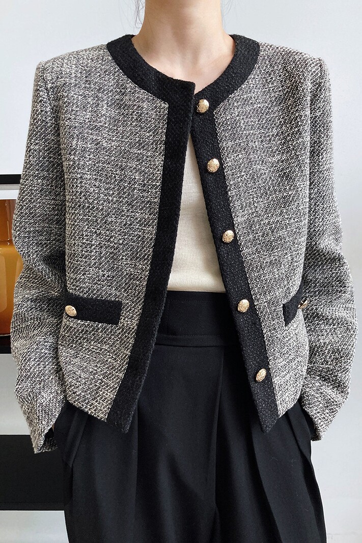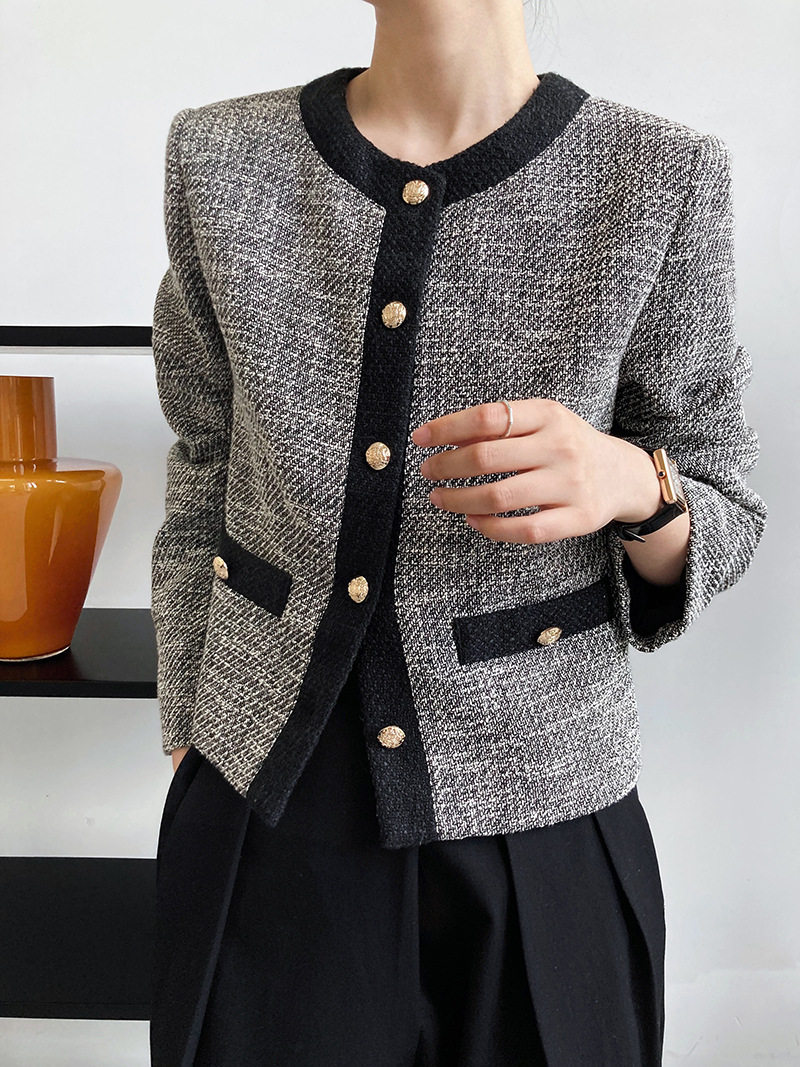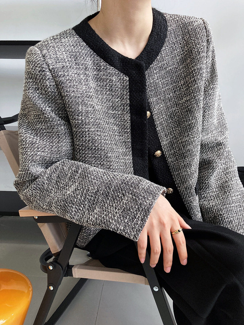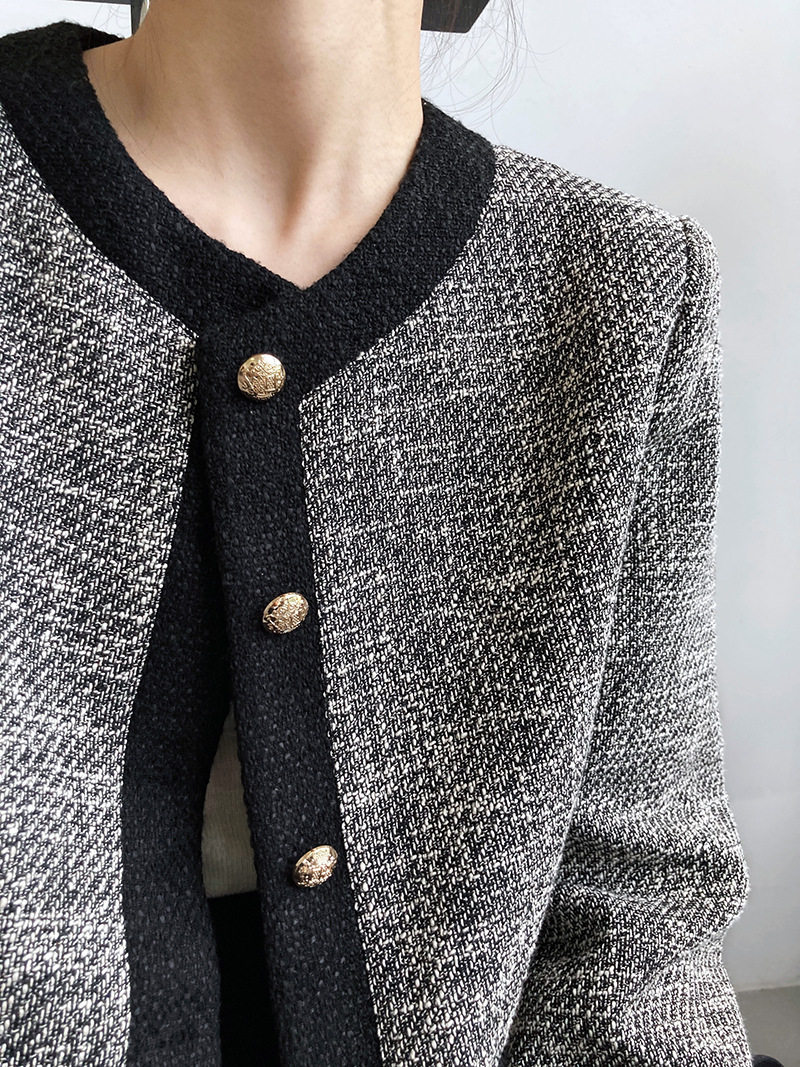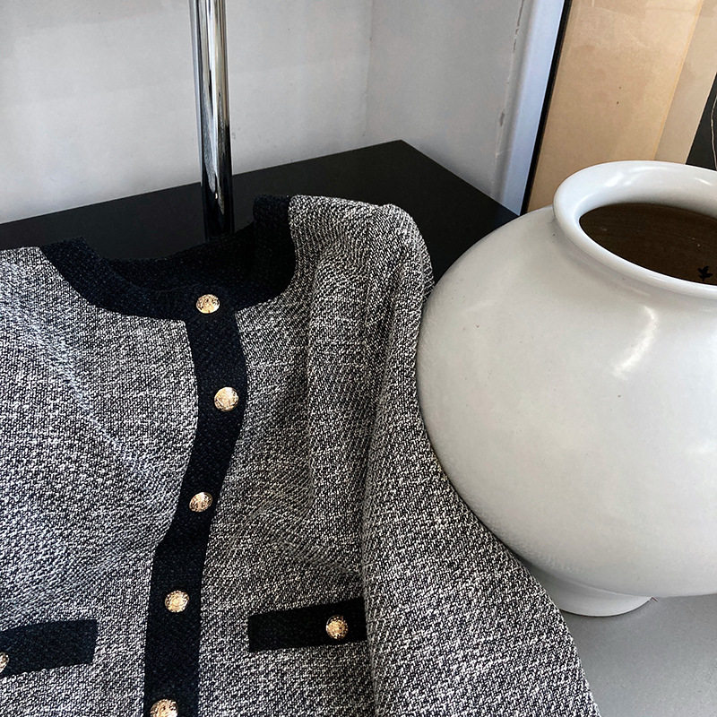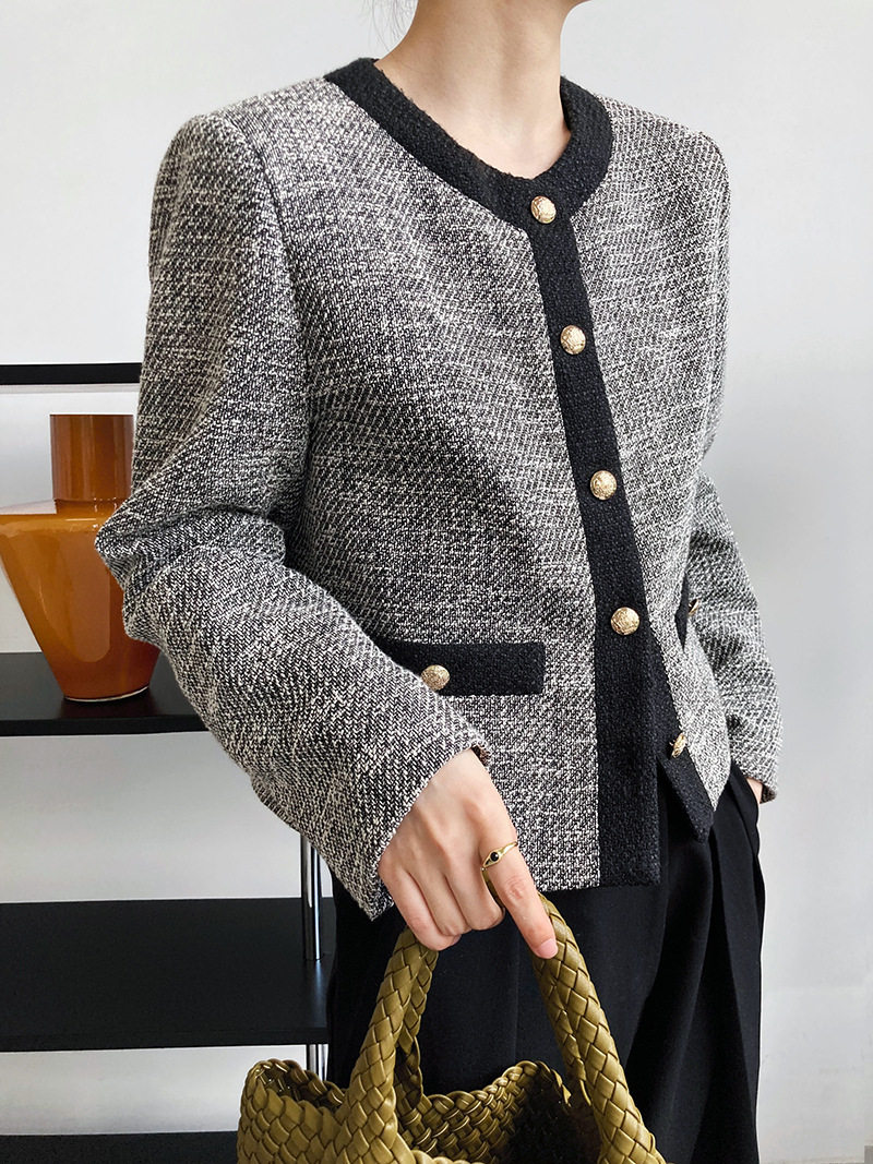 Осенняя ретро короткая куртка, французский стиль, в стиле Шанель, изысканный стиль, яркий броский стиль