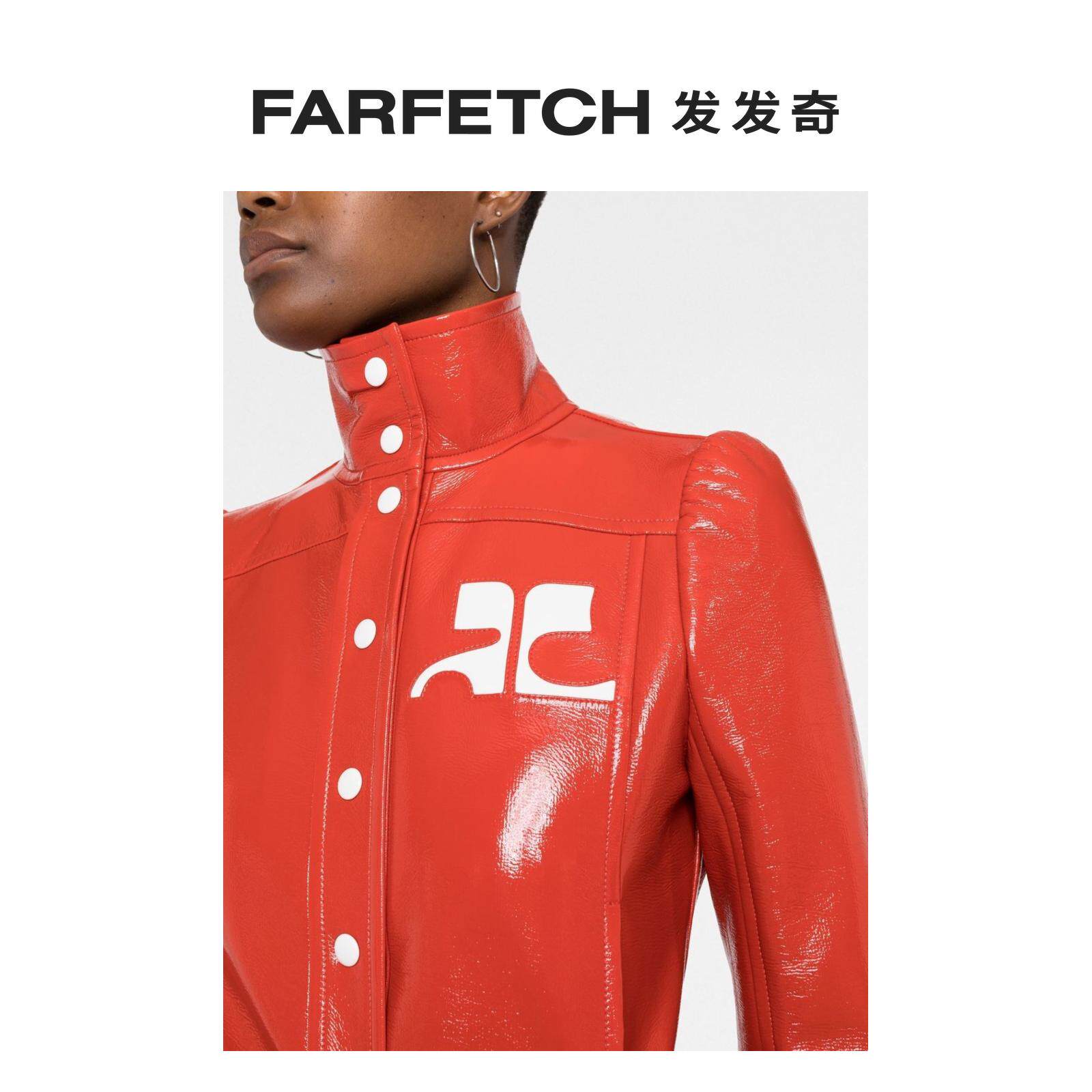 Courreges Миссис логотип печатает искусственная кожаная коротка короткая куртка FARFETCH - это странно