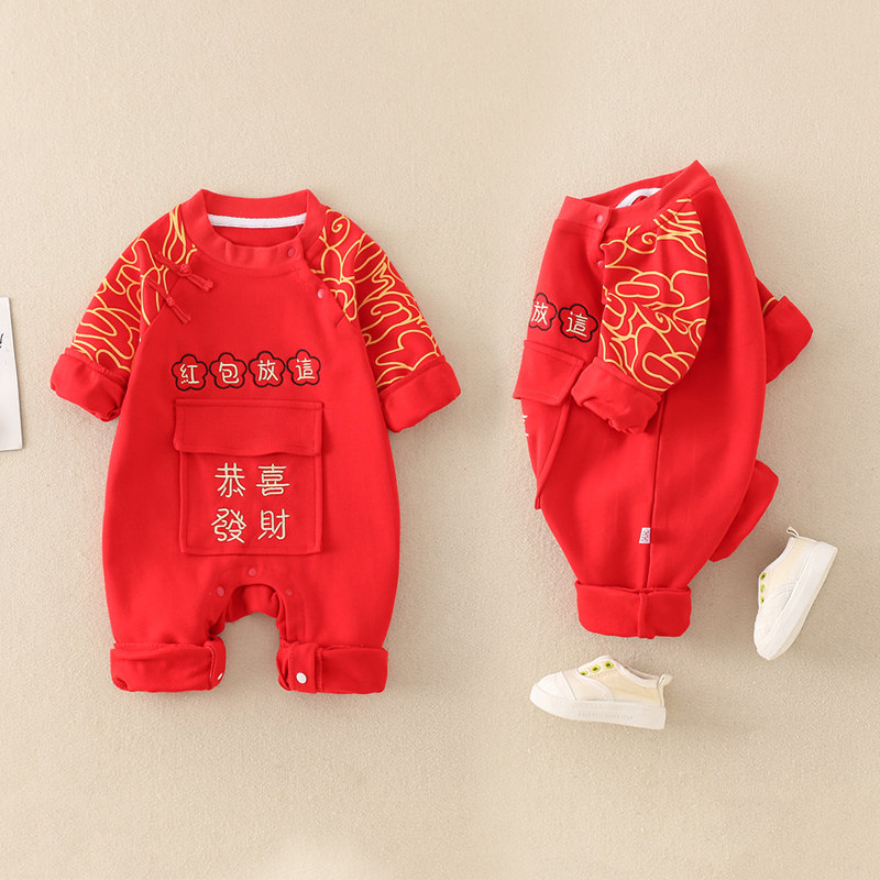 Детское хлопковое красное платье для новорожденных подходит для мужчин и женщин для девочек, наряд на выход, китайский стиль