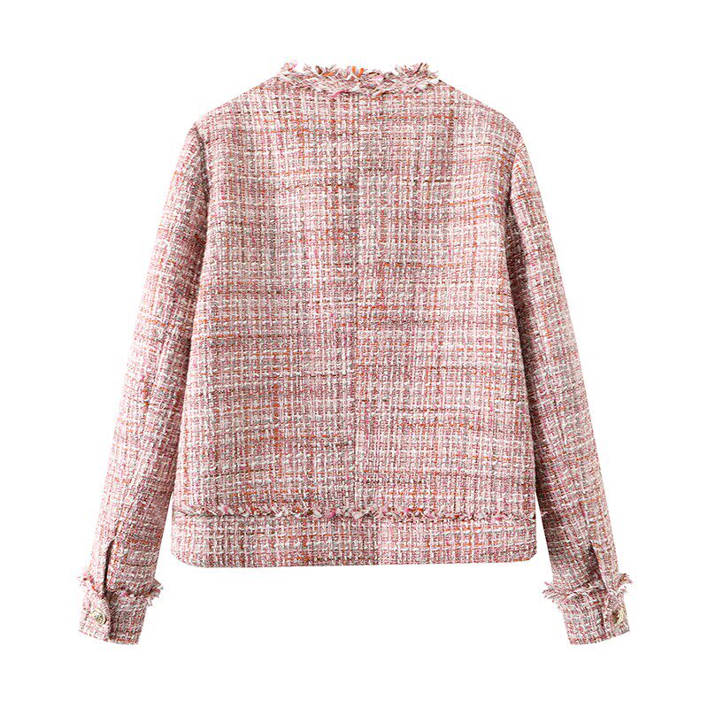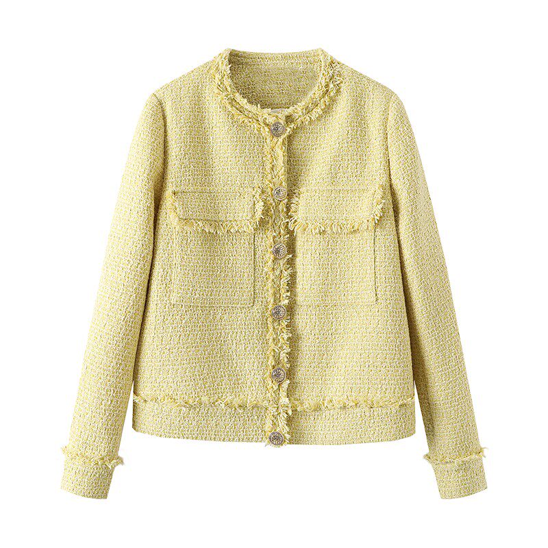 Модная куртка с круглым воротником, осенняя, в стиле Шанель