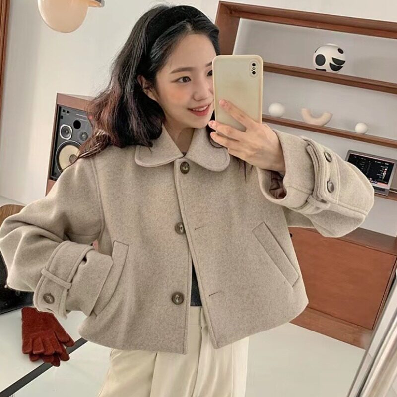 Демисезонная куртка, шерстяное пальто, в корейском стиле, подходит для подростков