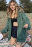 Ретро зеленая цветная толстовка для отдыха с капюшоном с молнией, куртка