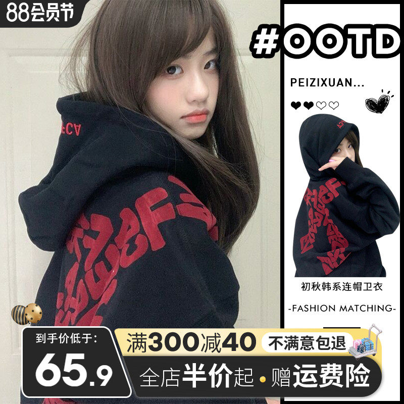 Черная толстовка с капюшоном, демисезонная ретро утепленная толстовка, оверсайз, увеличенная толщина, коллекция 2023, в американском стиле