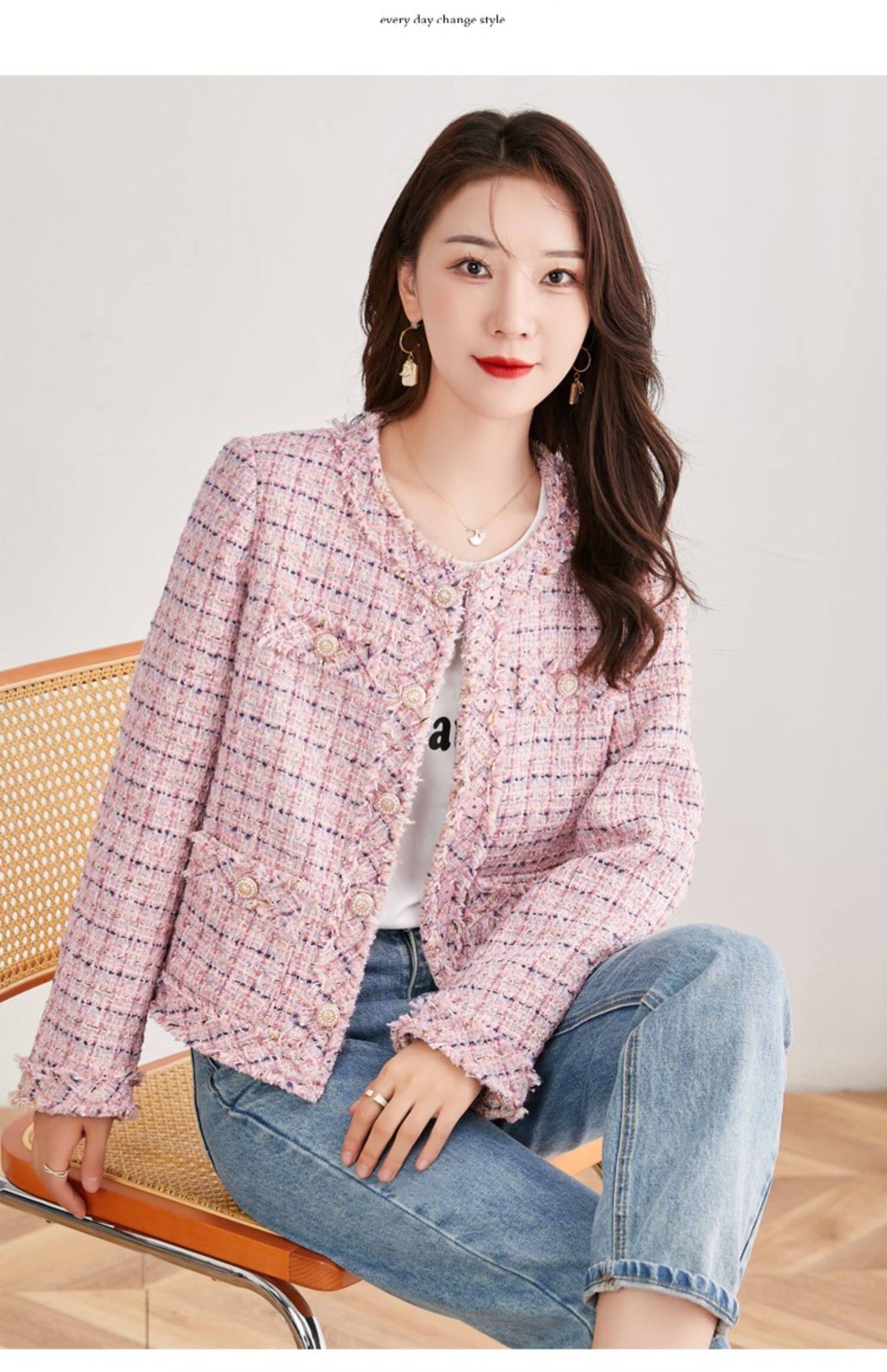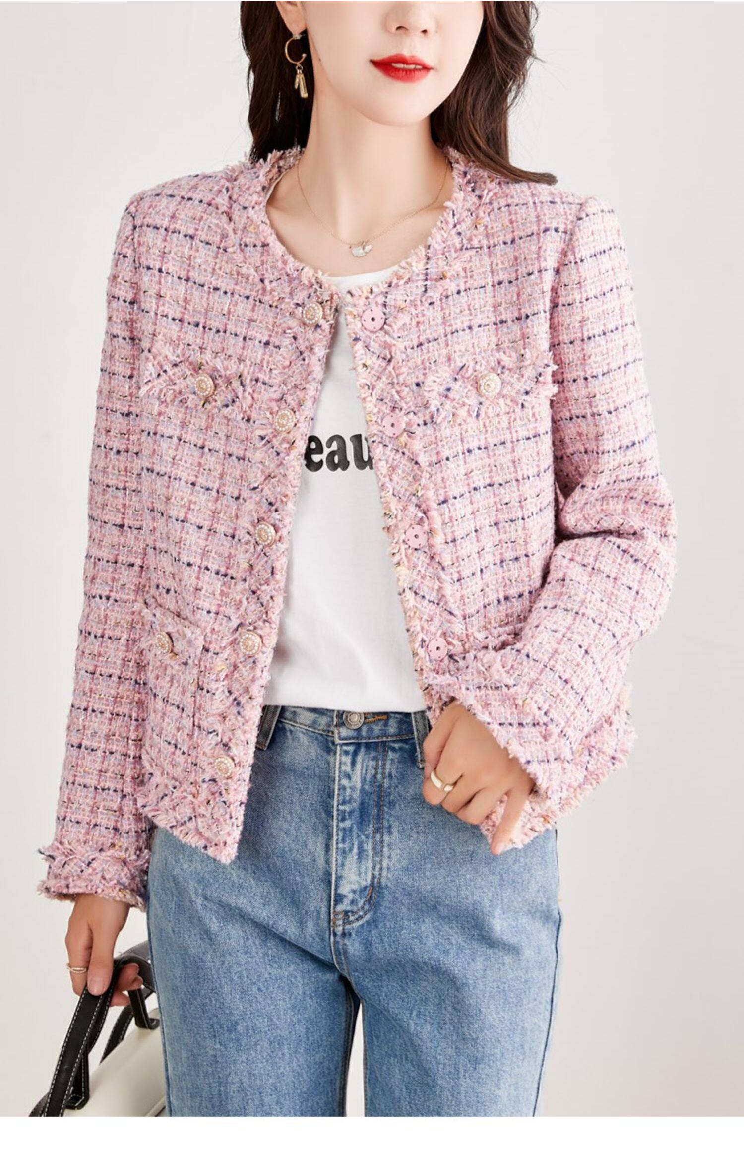 | Цвет: | Розовый небольшой костюм, демисезонный плащ, демисезонная осенняя куртка, в стиле Шанель, подходит для подростков |