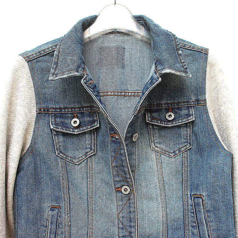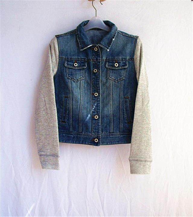 Джинсовая демисезонная короткая трикотажная куртка для школьников