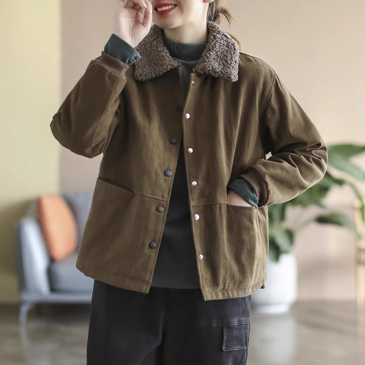 (Трансграничная торговля), ретро хлопковая флисовая короткая куртка, оверсайз