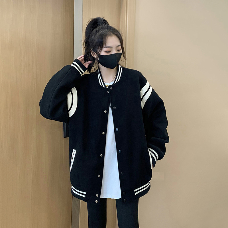 Весенняя черная бейсбольная утепленная форма, небольшая куртка, в корейском стиле, в стиле Шанель