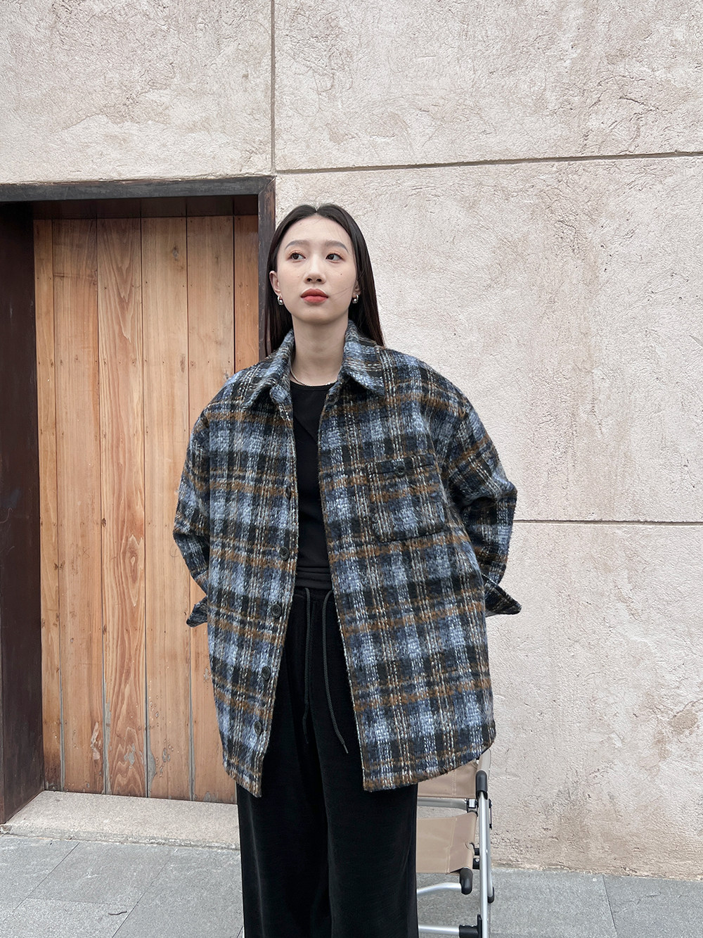 Шерстяное пальто, куртка, зимняя длинная стеганая шерстяная рубашка, свободный крой, средней длины, увеличенная толщина